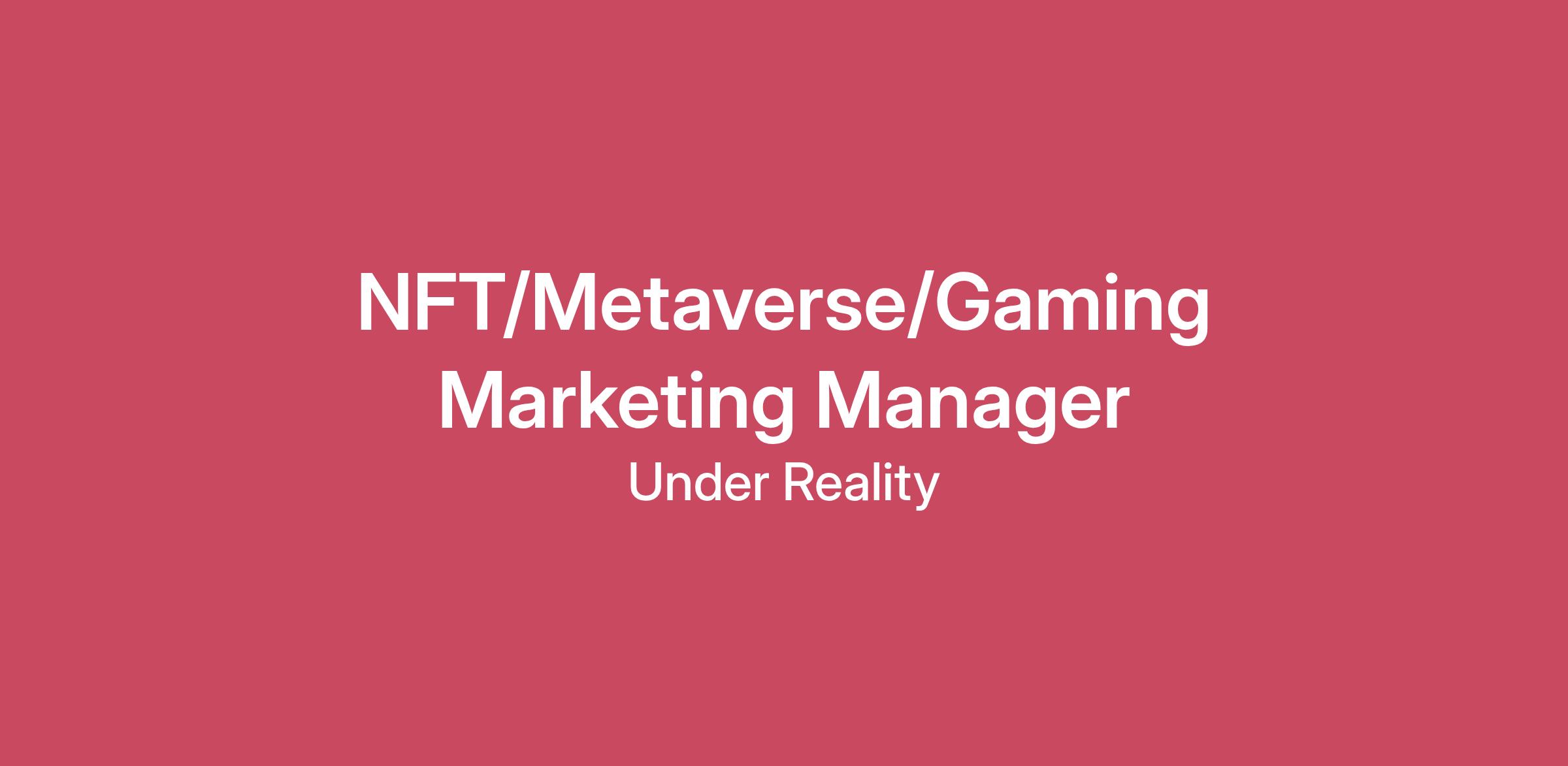 We’re looking for an NFT/Metaverse/Gaming Marketing Manager at Under Reality HeadQuarters in Amsterdam, as of June 1st, 2022. Under Reality is a digital media, entertainment, and technology company that creates stunning, high-quality services.