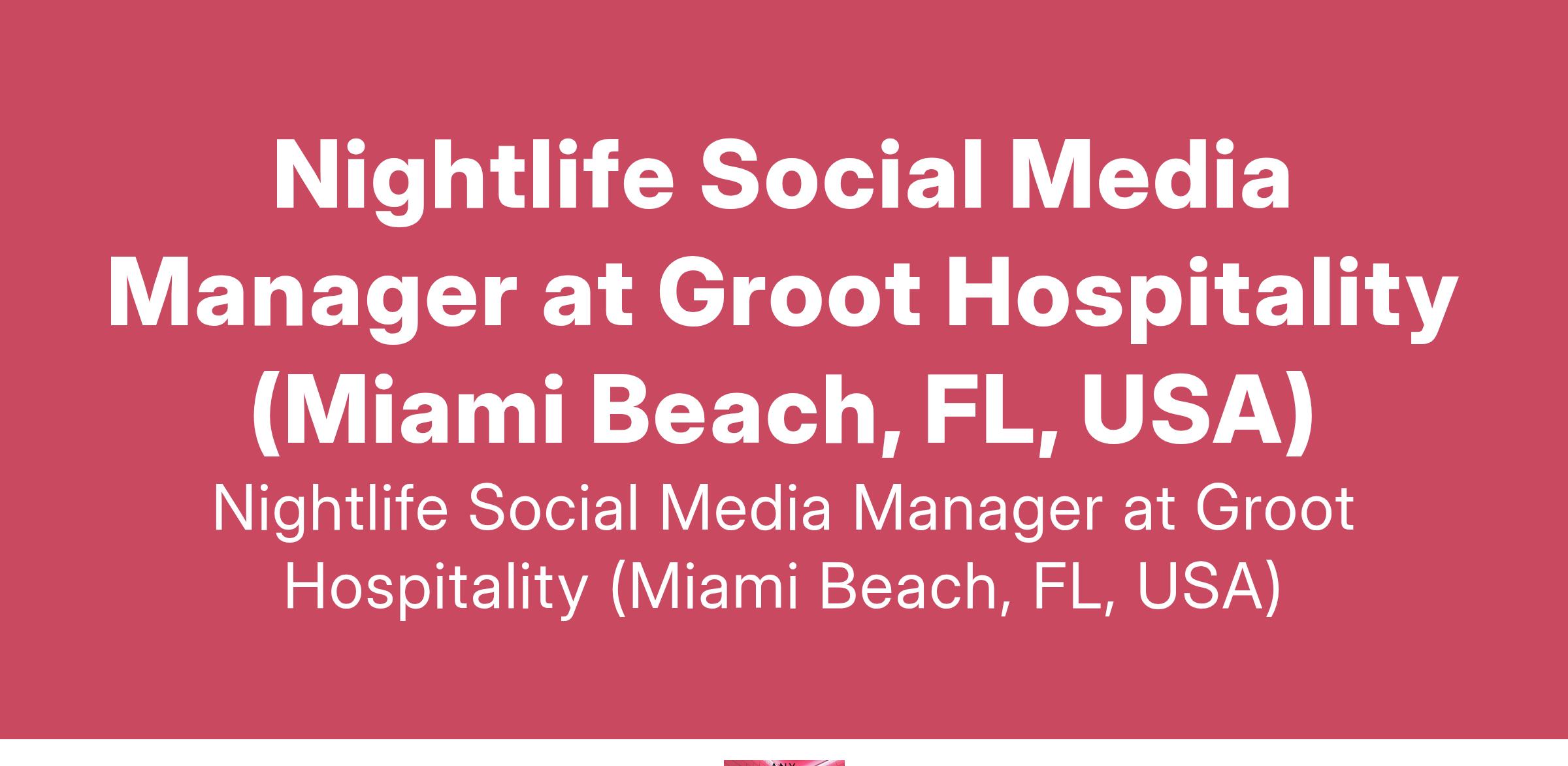Nightlife Social Media Manager at Groot Hospitality (Miami Beach, FL, USA)