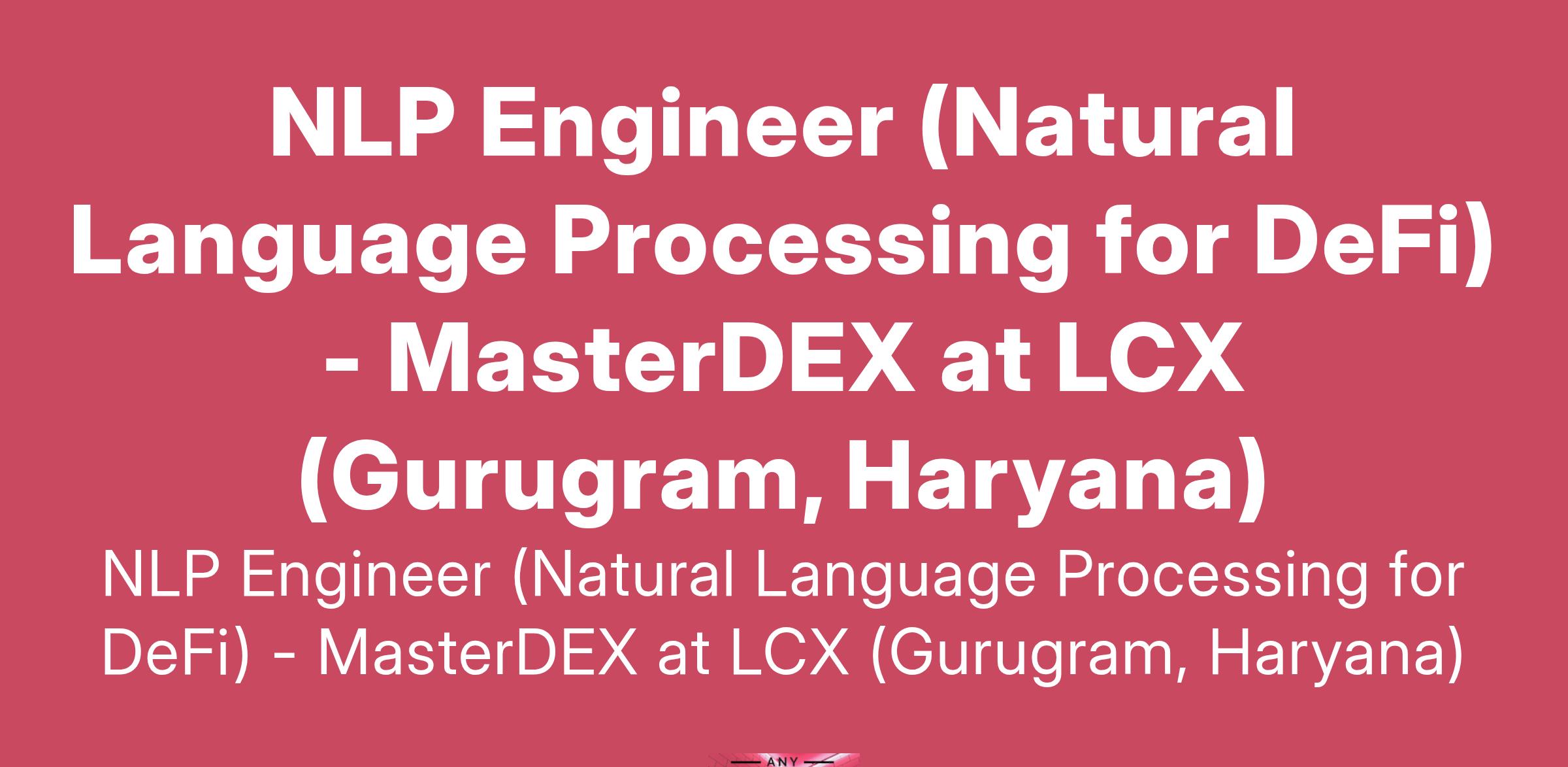 NLP Engineer (Natural Language Processing for DeFi) - MasterDEX at LCX (Gurugram, Haryana)