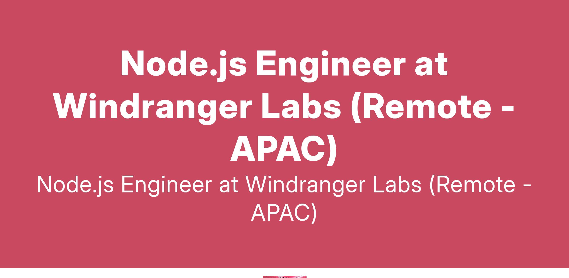 Node.js Engineer at Windranger Labs (Remote - APAC)
