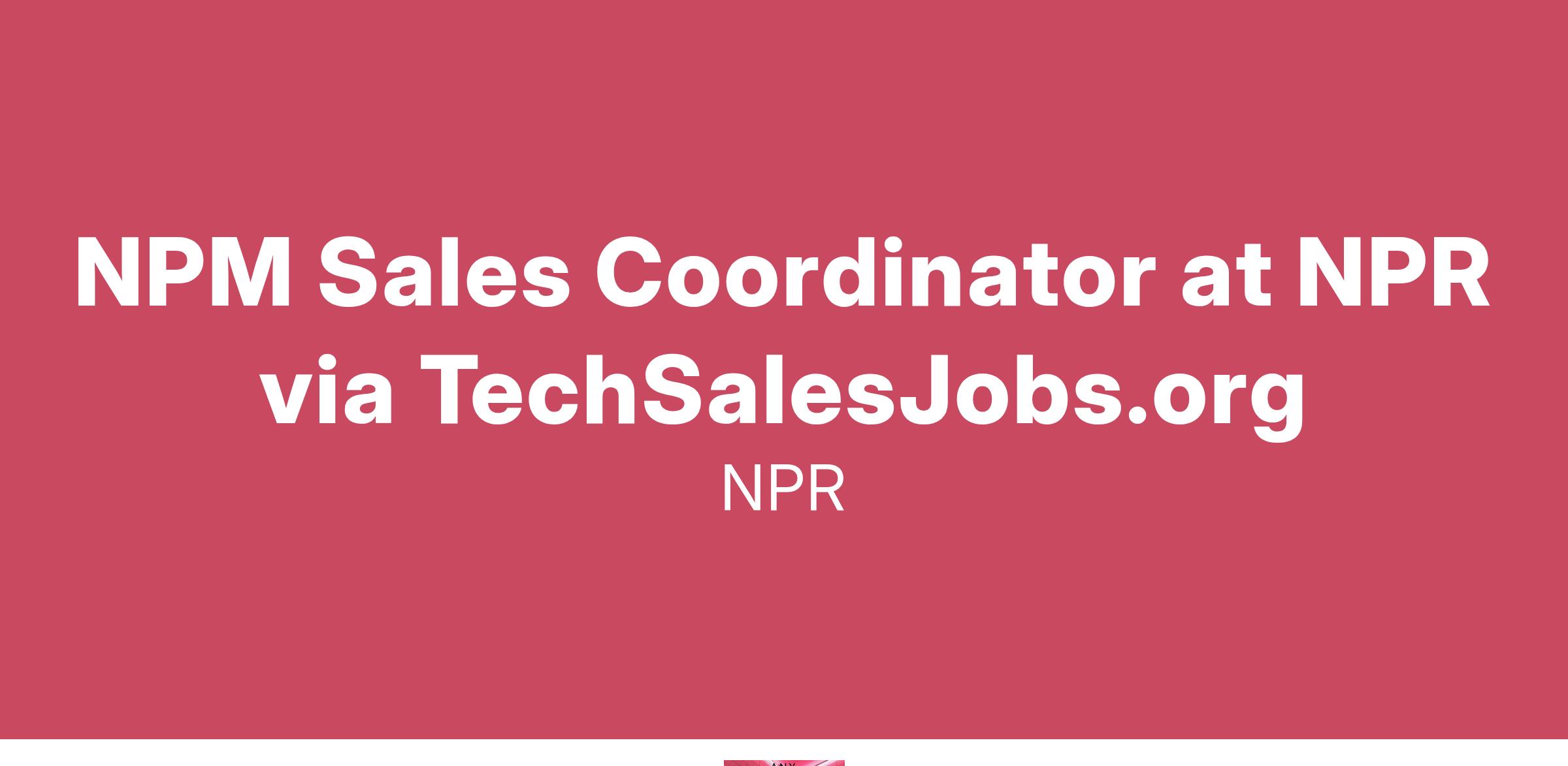National Public Media is looking for an experienced sales coordinator to join our New York NPR sales office. The sales team represents NPR’s radio, podcast, digital and events platforms. The ideal candidate has experience working in a fast-paced media sales or advertising agency environment, is curious about the media industry, detail-oriented, able to multi-task and has a proven ability to thrive under pressure.