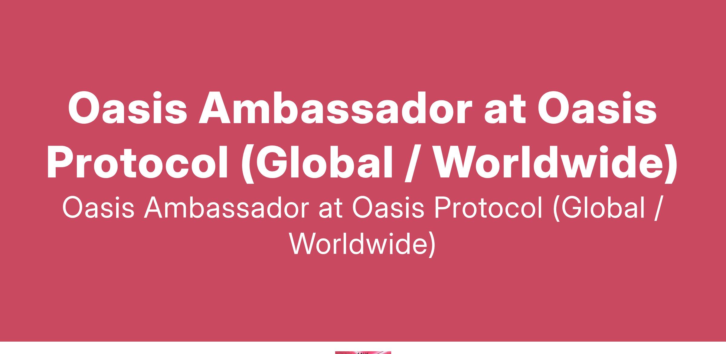 Oasis Ambassador at Oasis Protocol (Global / Worldwide)