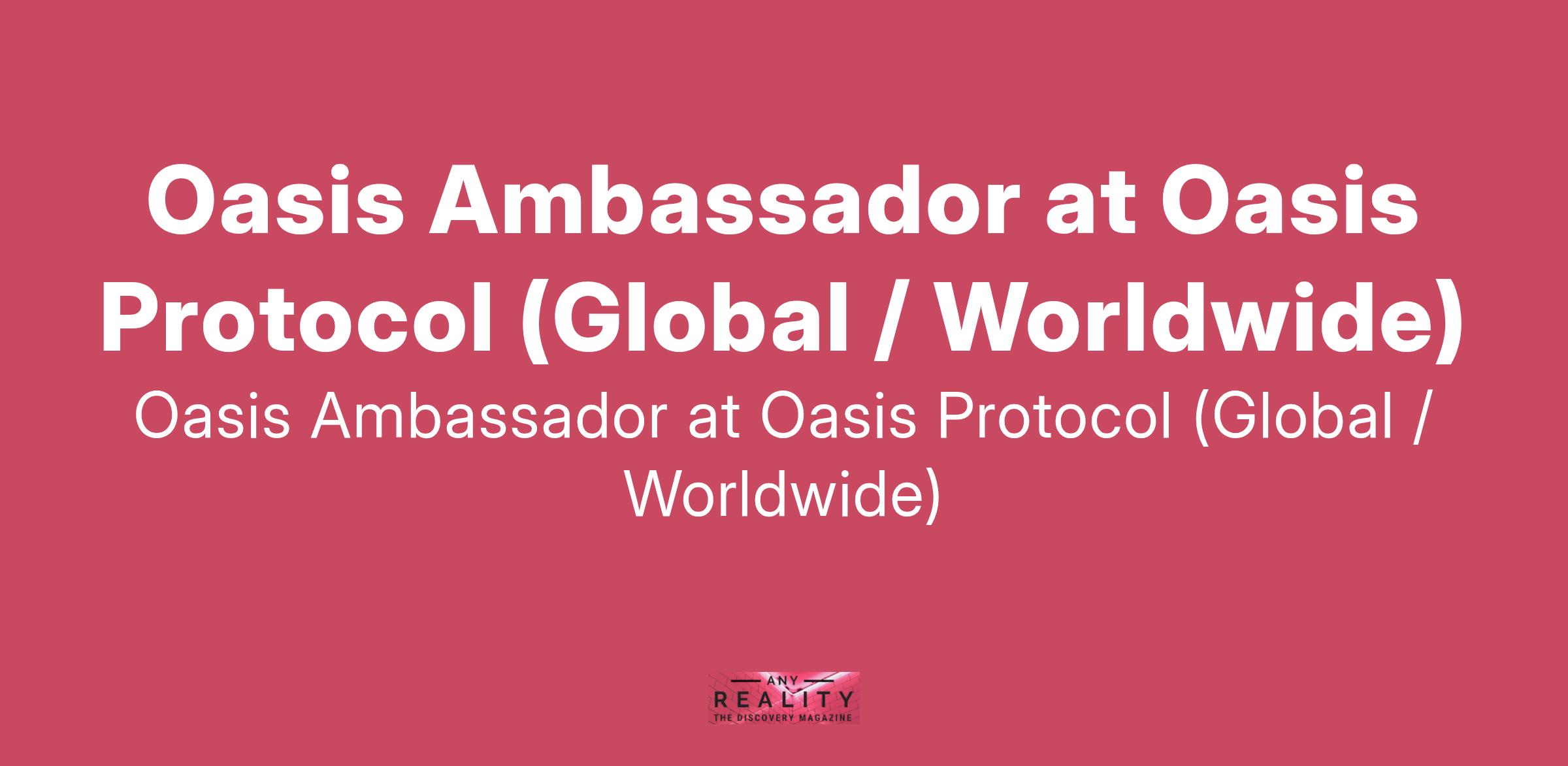 Oasis Ambassador at Oasis Protocol (Global / Worldwide)