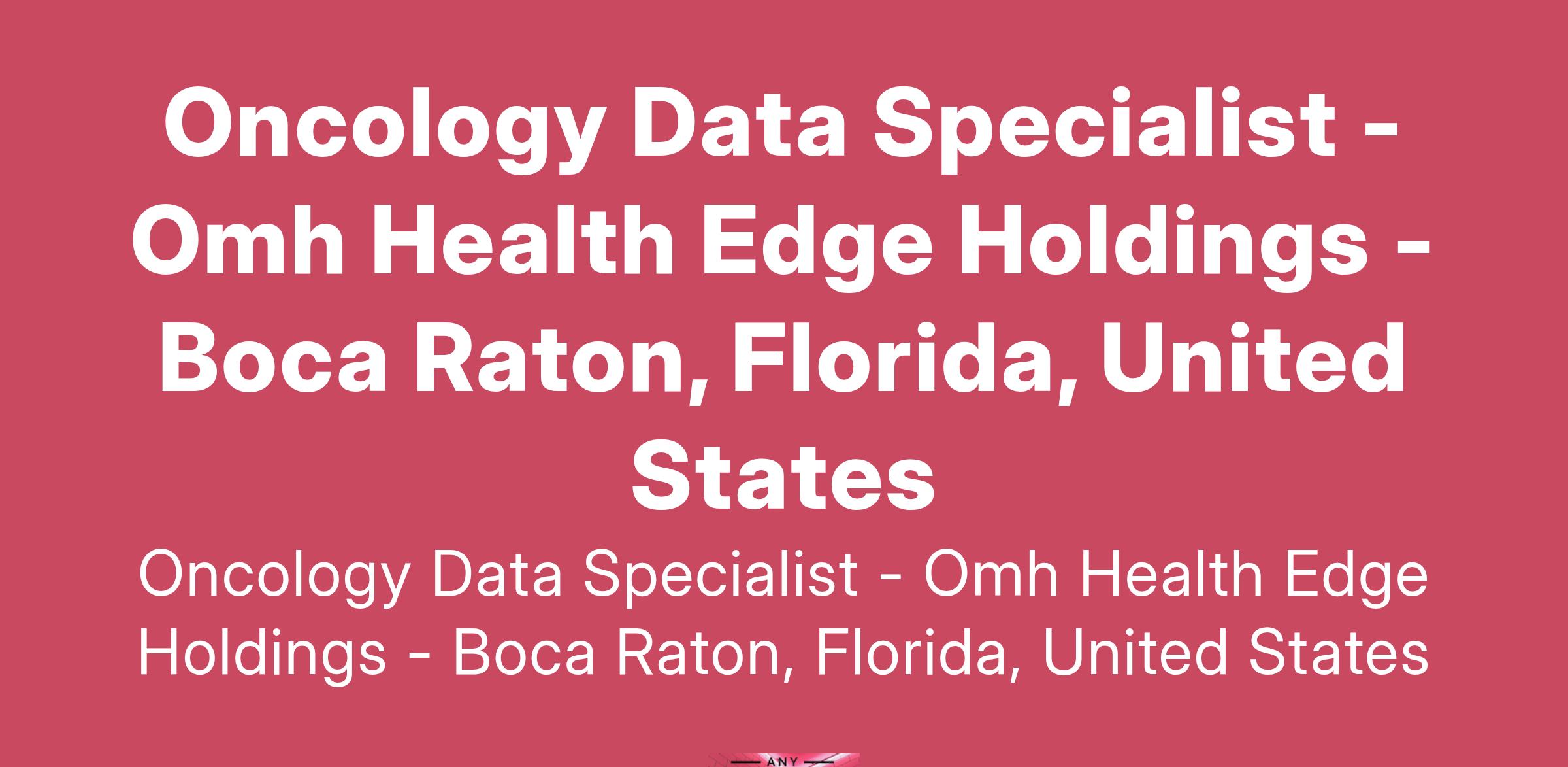 Oncology Data Specialist - Omh Health Edge Holdings - Boca Raton, Florida, United States