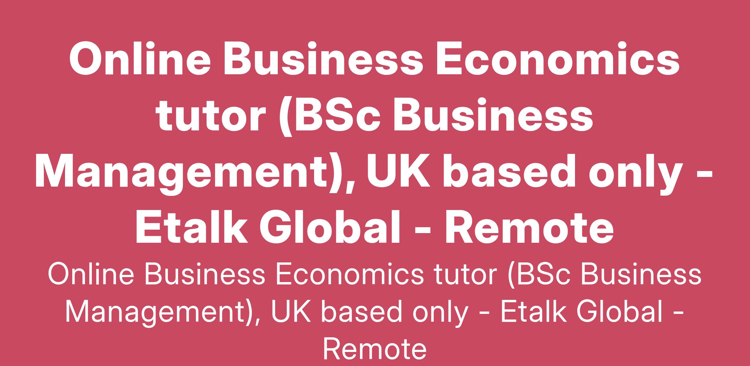 eTalk Live Tutoring is looking for an Business Economics tutor to conduct online classes.