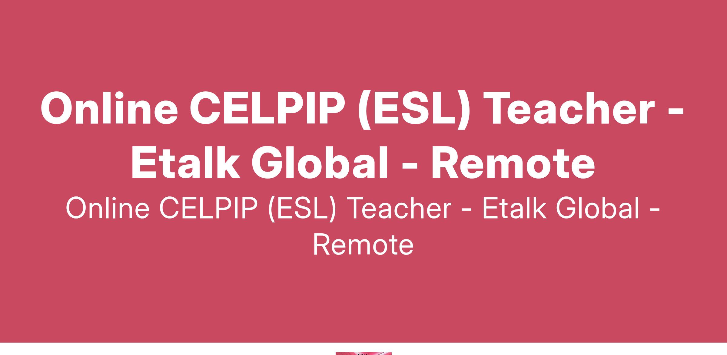 eTalk International Online English School is looking for CELPIP teachers to conduct online classes for teens and adults.