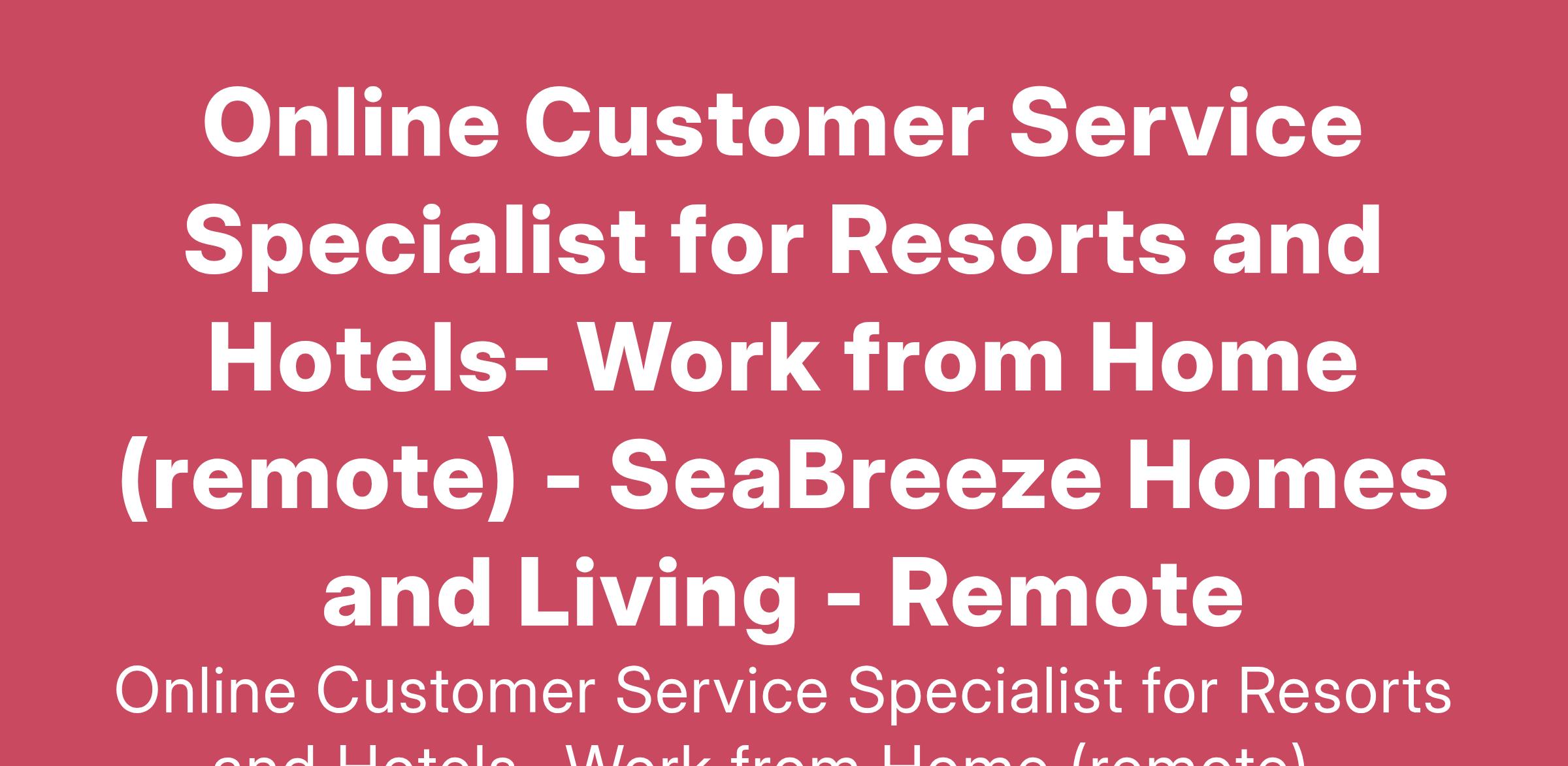 If you have a passion for travel, love helping others, and want a rewarding work-from-home role, apply now to become an Online Customer Service Specialist for Resorts and Hotels!