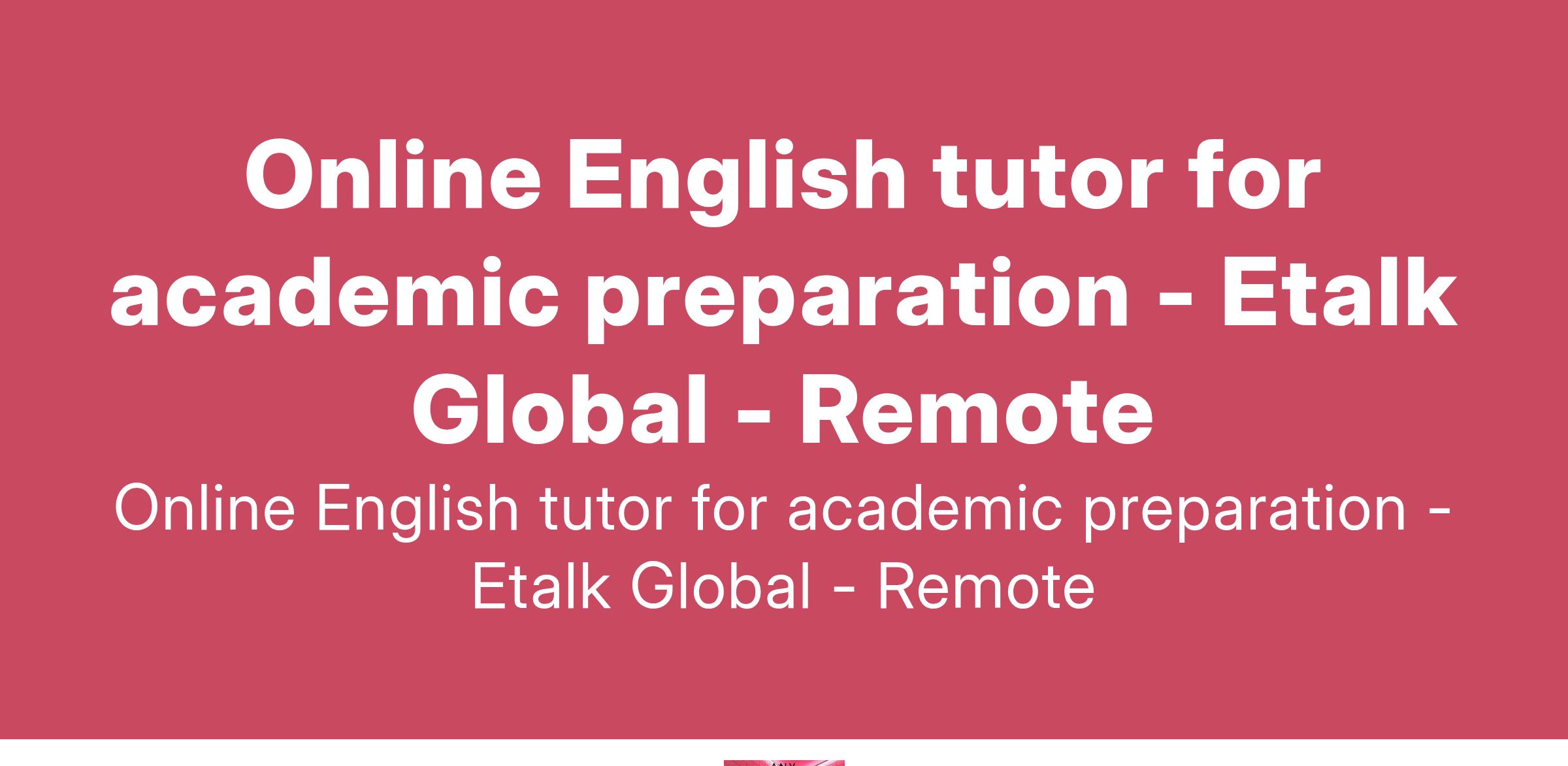 eTalk International Online English School is looking for English teachers to conduct online classes for teens.