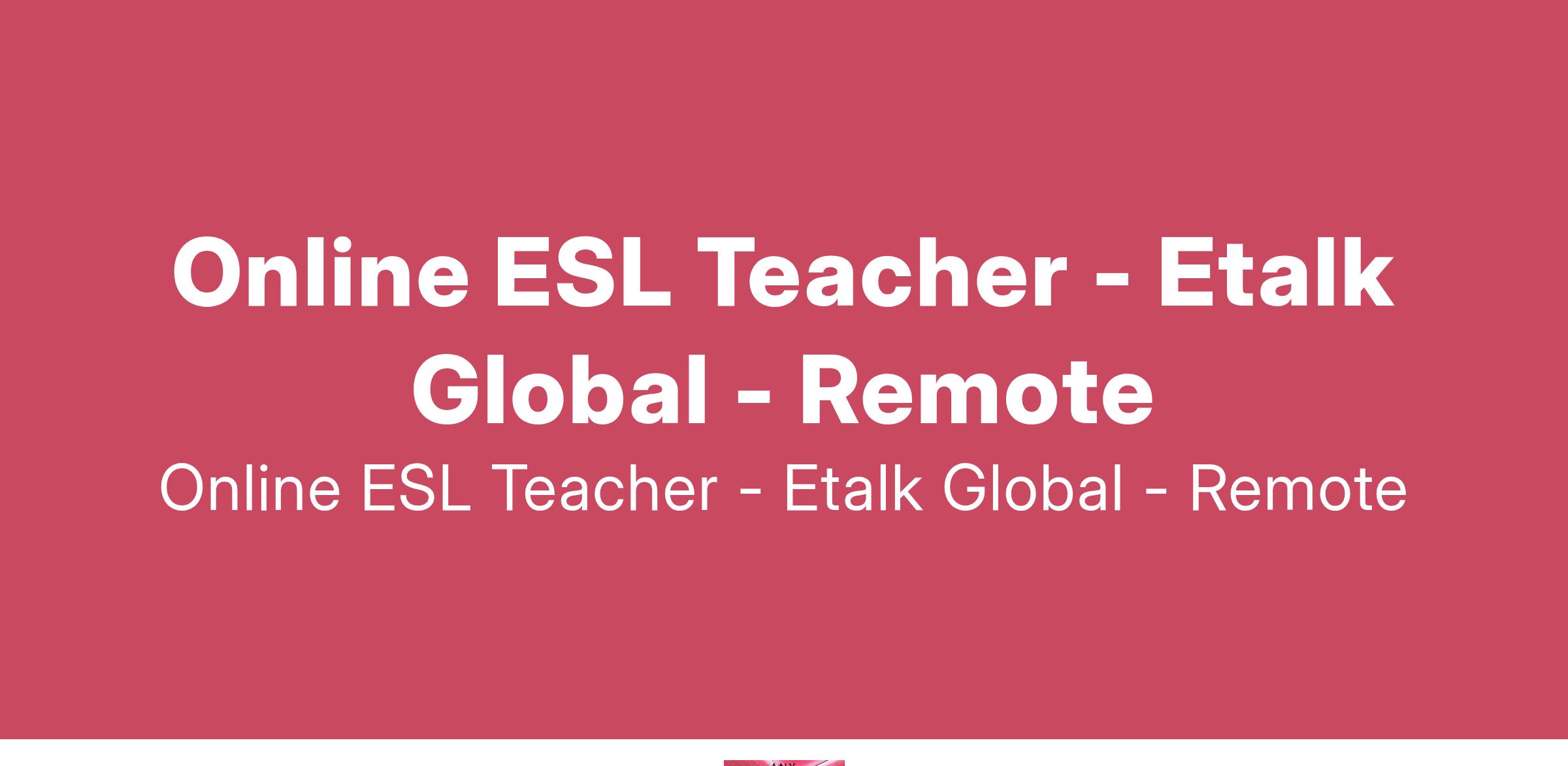 eTalk International Online English School is looking for ESL TEACHERS to conduct online classes for kids, teens, and adults.