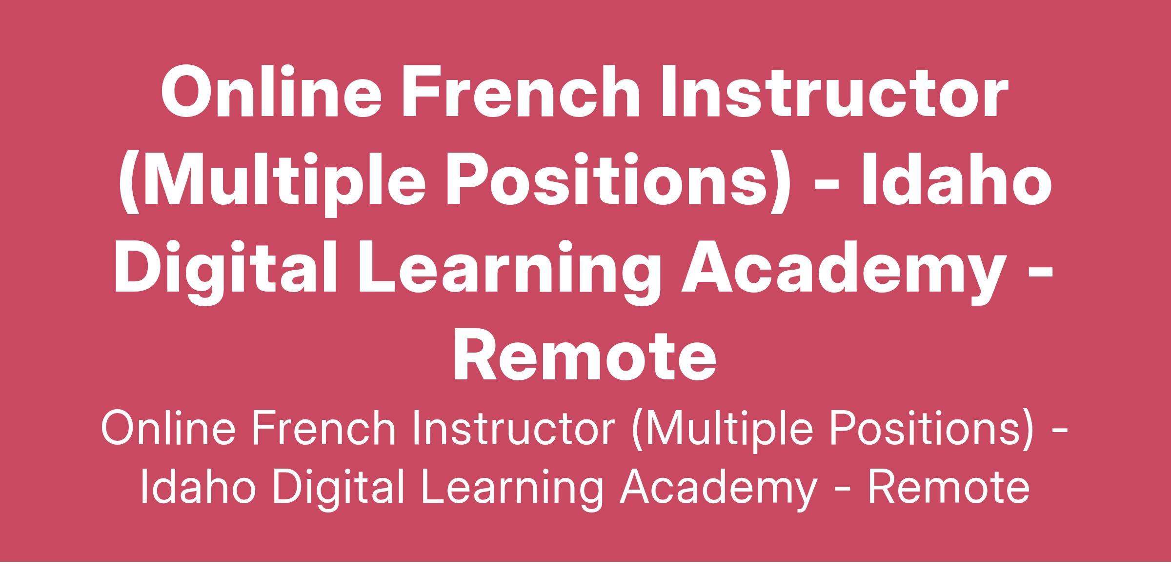 The Idaho Digital Learning Academy, a statewide virtual school, has openings for part-time Online Instructors. These part-time positions work remotely and are located anywhere in the state of Idaho.