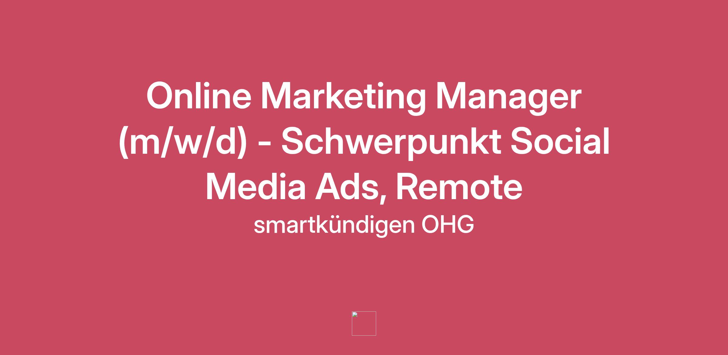 Online Marketing Manager (m/w/d) - Schwerpunkt Social Media Ads, Remote