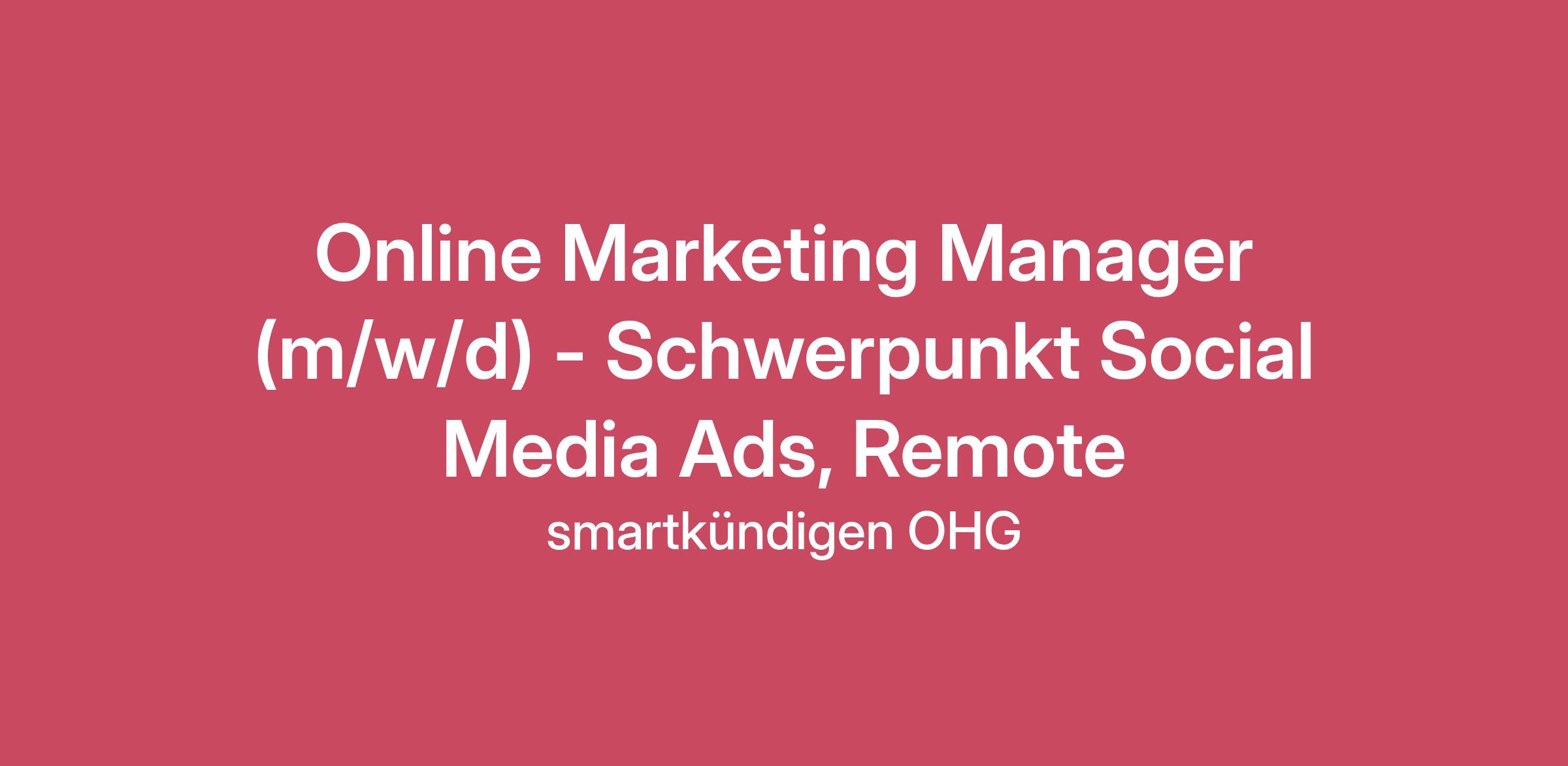Online Marketing Manager (m/w/d) - Schwerpunkt Social Media Ads, Remote