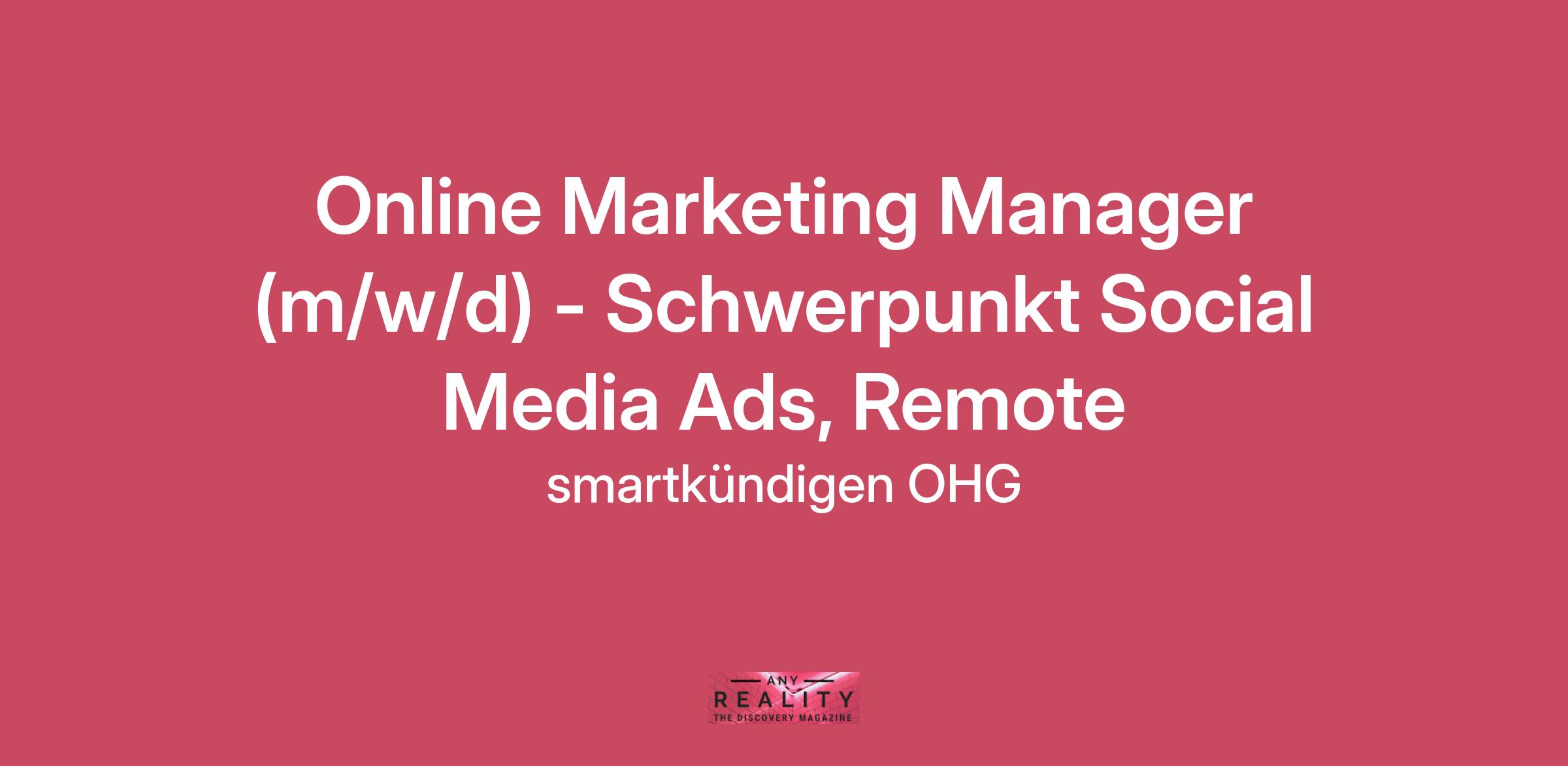 Online Marketing Manager (m/w/d) - Schwerpunkt Social Media Ads, Remote