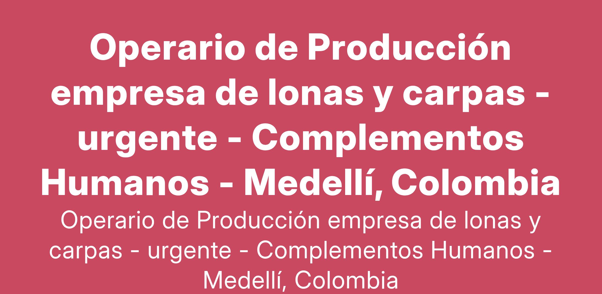 Empresa encargada de la fabricación de elementos de plástico, carpas y lonas industriales se encuentra contratando personal con experiencia básica mínima de 6 meses en producción.