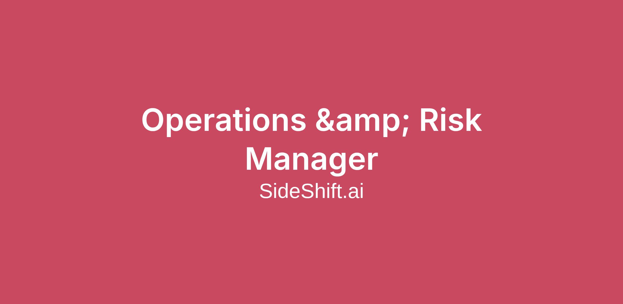 SideShift.ai, the direct-to-wallet crypto exchange, is hiring an Operations & Risk Manager.