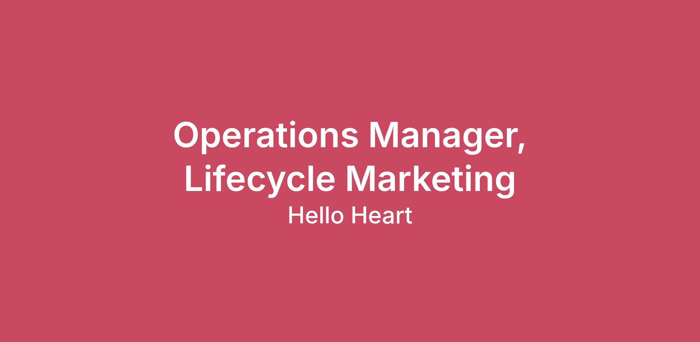 About Hello Heart: Hello Heart is on a mission to change the way people care for their hearts. The company provides the first app and connected heart monitor to help people track and manage their heart health. With Hello Heart, users take steps to control their risk of heart attacks and stroke – the leading cause of death in the United States. Peer-reviewed studies have shown that high-risk users of Hello Heart have seen meaningful drops in blood pressure, cholesterol and even weight. Recognized as the digital leader in preventive heart health, Hello Heart is trusted by more than 130 leading Fortune 500 and government employers, national health plans, and labor organizations. Founded in 2013, Hello Heart has raised more than $138 million from top venture firms and is a best-in-class solution on the American Heart Association’s Innovators’ Network and CVS Health Point Solutions Management platform. Visit www.helloheart.com for more information.About Hello Heart: As a leading digital health technology company, Hello Heart is a best in class solution for hypertension and heart health. Using applied science, we empower people to understand and improve their heart health, the #1 cause of death in the world. We are on a mission to enable people to be active participants in their own heart health journey by providing the leading digital therapeutics solution for hypertension and cardiovascular disease, empowering our users to live happy, heart-healthy lives. Our results are backed by clinical studies and consistent use of our solution has been proven to save lives. Our solution is sponsored by employers or health plans to our users selling B2B2C to over 50 Fortune 1000 self insured employers. Hello Heart is backed by leading VCs among them are Khosla Ventures, IVP Blue Run and Resolute. About the Role We’re looking for a hands-on, detail-oriented Lifecycle Marketing, Operations Manager to help scale and streamline our lifecycle engine. You’ll be responsible for building and maintaining the systems, tools, and workflows that power our lifecycle programs. This role focuses on operational execution excellence and infrastructure. You’ll be the team’s Iterable ninja. Reporting to our Senior Manager, Lifecycle Marketing, you’ll work closely with Lifecycle Marketing, Creative, Analytics, Product, Engineering, Data, and Customer Success to ensure campaigns are delivered accurately, efficiently, and compliantly. This role executes against a shared lifecycle roadmap defined by our lifecycle strategists.From building journeys and audiences in Iterable to managing QA and execution processes, your work will ensure we deliver a seamless experience to members. If you thrive on structure, process, automation, and execution, and love being the operational backbone that helps lifecycle marketing run at scale, this role is for you.This role operates at the execution and infrastructure layer of Lifecycle Marketing, enabling strategic leaders to focus on growth, retention, and launch excellence. Responsibilities Lead lifecycle campaign operations in Iterable end-to-end: build and launch campaigns, journeys/workflows, triggers, templates, and personalization across email, SMS, and push notifications. Build and manage audiences based on defined segmentation frameworks, targeting strategies, suppressions, dynamic lists, and audience refresh processes, ensuring precise execution of the established lifecycle strategy, ensuring the right message reaches the right member at the right time. Execute campaigns from setup → QA → launch → monitoring, ensuring precision and consistency at high volume across email, SMS, and push. Manage and evolve QA processes to ensure flawless execution (rendering/testing, link checks, targeting validation, tracking, and compliance review). Implement process improvements and automation to reduce manual work and increase execution speed (including leveraging AI solutions or scripts when helpful). Ensure proper setup and governance of marketing tools and workflows (Iterable as primary; plus coordination with tools like Salesforce and Asana as needed). Maintain lifecycle data infrastructure: audience list generation protocols, segmentation standards, and documentation to support scalable execution and reliable measurement. Partner cross-functionally to align campaign execution with defined lifecycle priorities, stakeholder requirements, data dependencies, and compliance standards Operationalize structured experimentation, including A/B tests and holdouts, based on defined testing strategies and measurement frameworks, so the team can learn and iterate quickly. Execute lifecycle initiatives across the lifecycle function, ensuring operational excellence without strategic ownership of prioritization or roadmap decisions. Support operational workflows for additional channels like direct mail and phone outreach programs (e.g., list creation/formatting, vendor coordination, timeline management, QA). Requirements 5+ years of marketing operations or campaign execution experience, ideally in a high-volume or regulated environment. Deep hands-on expertise with Iterable (required): proven ability to build campaigns, journeys, audiences, segmentation, and dynamic targeting with strong QA discipline. Experience with operational execution for direct mail and/or phone outreach workflows, including vendor coordination. Demonstrated experience executing lifecycle programs across the following channels: email, SMS, push notifications, and in-app messaging. Strong comfort with tools and data: audience segmentation logic, list generation, tracking/measurement setup, and working with partners like Data/Engineering to resolve data gaps. Proven ability to create and maintain operational workflows, QA processes, and documentation. Strong project management skills; able to juggle multiple timelines and stakeholders at once. Hello Heart has a positive, diverse, and supportive culture - we look for pe