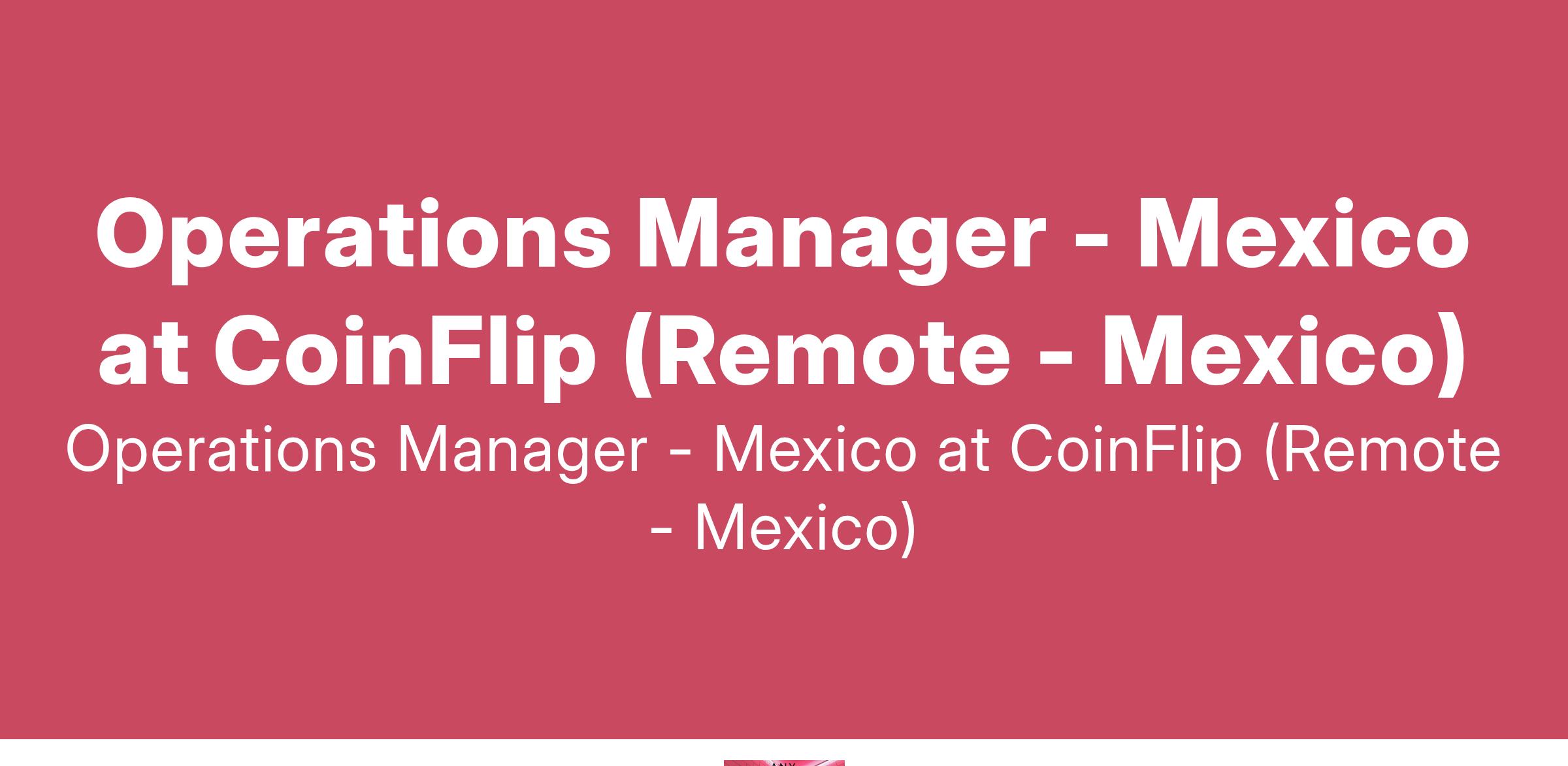 Operations Manager - Mexico at CoinFlip (Remote - Mexico)