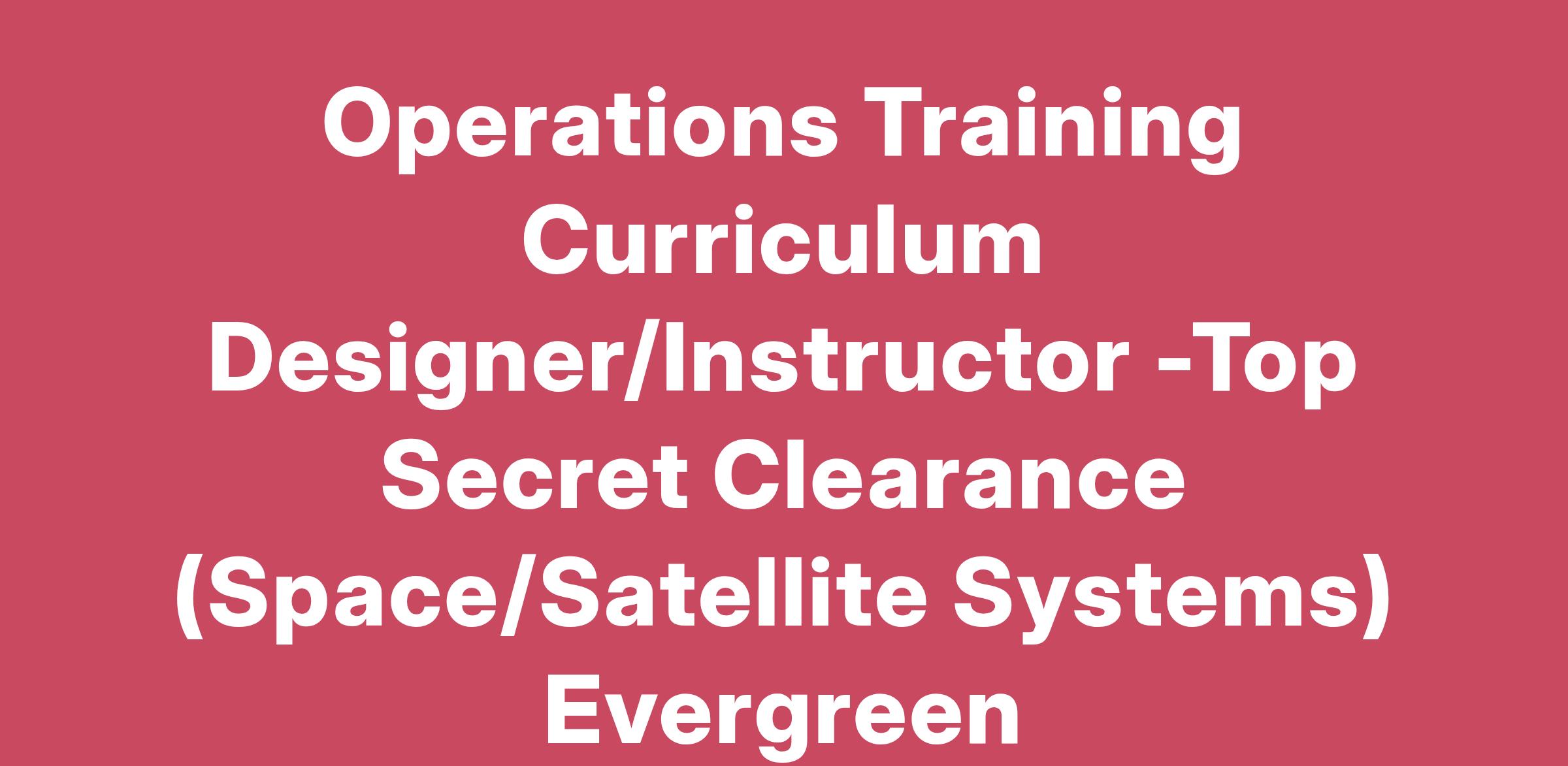 Operations Training Curriculum Designer/Instructor -Top Secret Clearance (Space/Satellite Systems) Evergreen