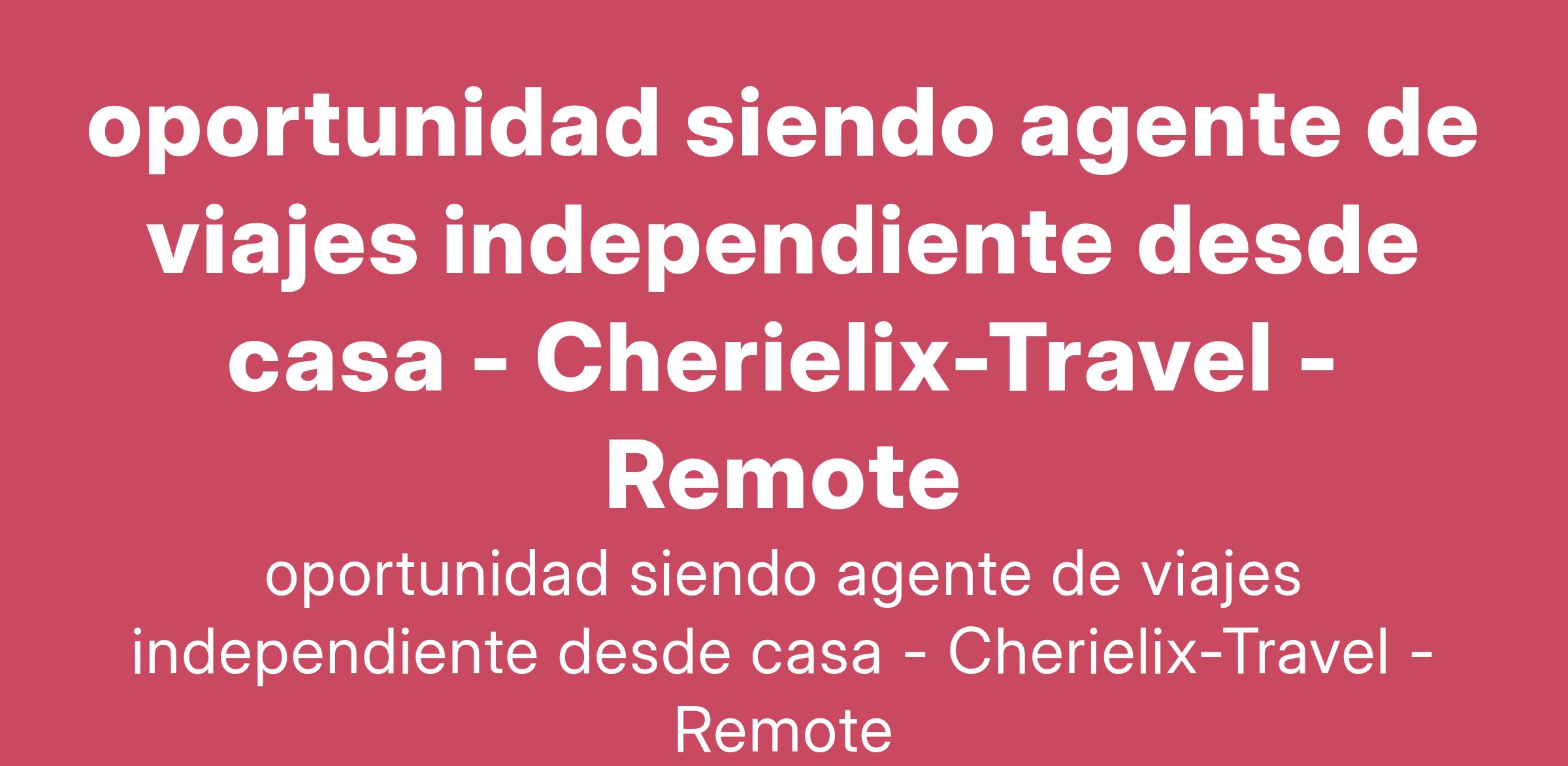 Descripción: Te invitamos a ser parte de nuestro equipo de Agentes de Viajes Independientes. Organiza viajes inolvidables, asesora a tus propios clientes y disfruta de horarios flexibles. ¡Accede a proveedores líderes como Royal Caribbean, Disney y muchos más!