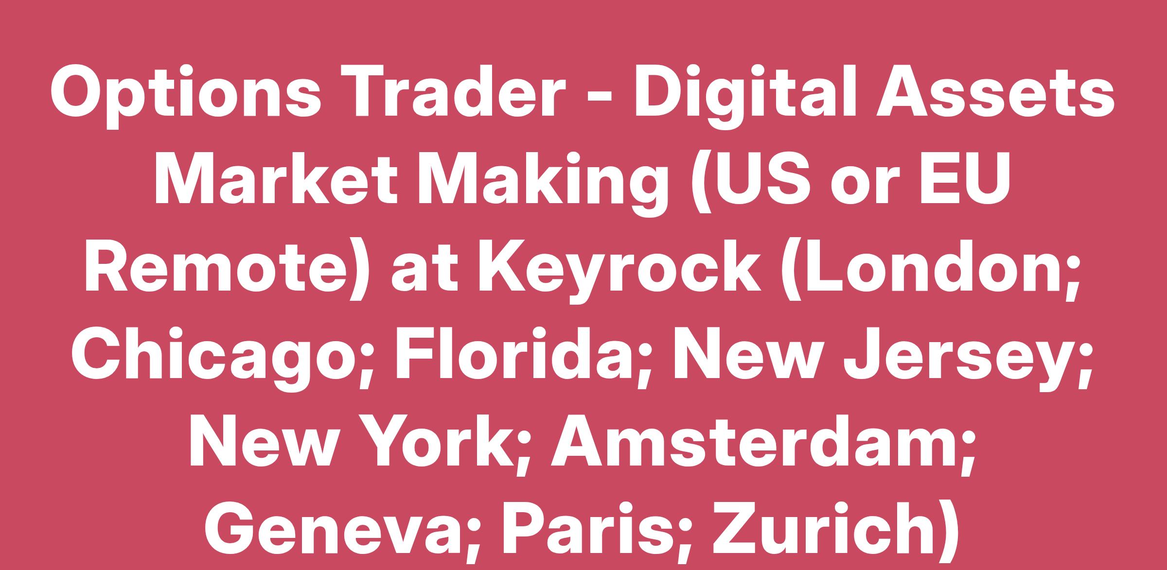 Options Trader - Digital Assets Market Making (US or EU Remote) at Keyrock (London; Chicago; Florida; New Jersey; New York; Amsterdam; Geneva; Paris; Zurich)