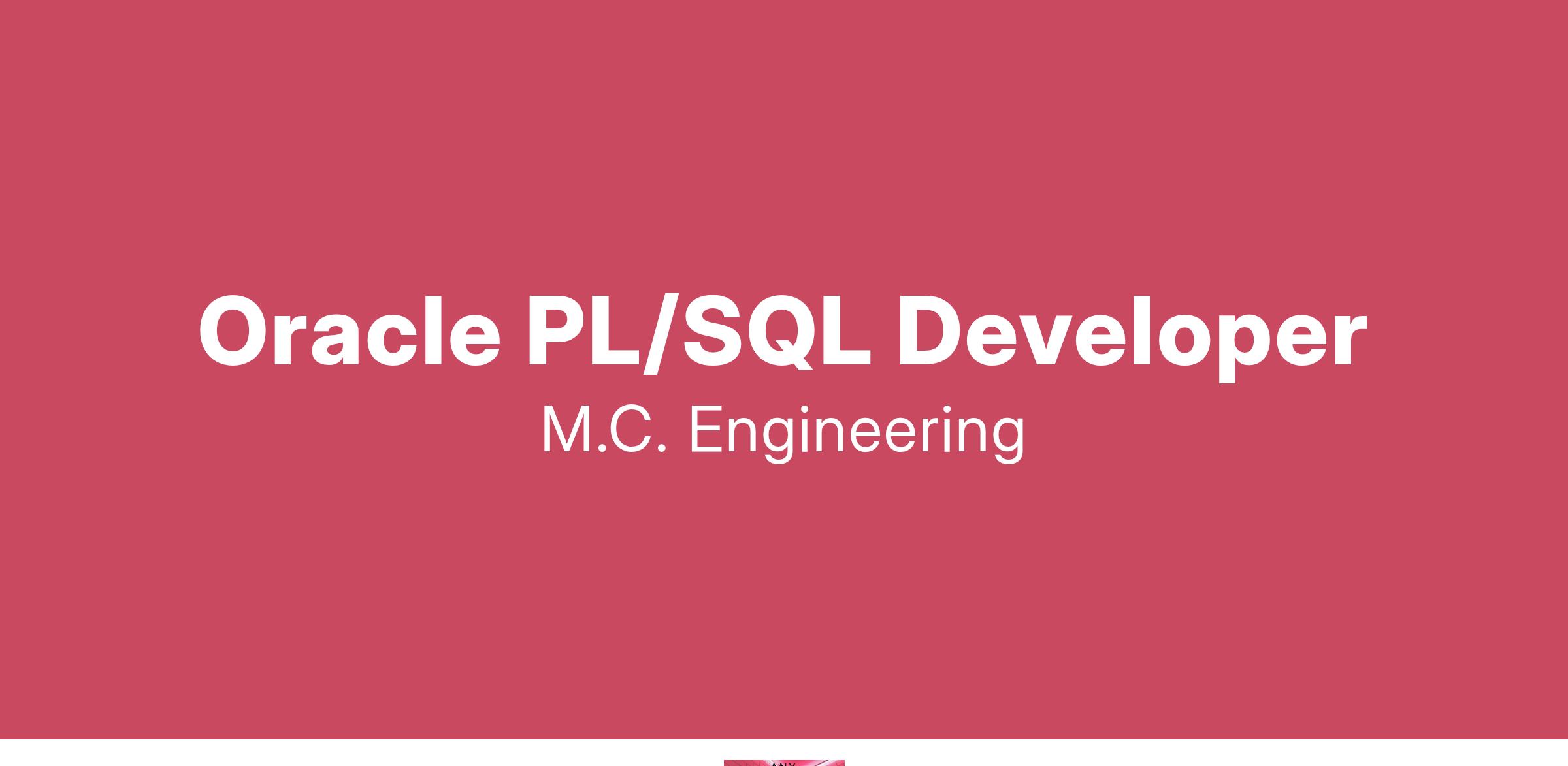 M.C. Engineering è una società di consulenza specializzata in Information Technology nata agli inizi degli anni Duemila. Con 4 sedi sul territorio nazionale -Torino, Milano, Roma, Bari- siamo un partner strategico ad alto contenuto tecnico. Approccio umanocentrico, competenza e innovazione tecnologica sono gli elementi grazie ai quali guardiamo ad obiettivi ambiziosi, consapevoli di poterli raggiungere. Desideri sperimentarti in una realtà dinamica e in crescita? Unisciti a noi! Oracle PL/SQL Developer - Diploma tecnico e/o laurea;.