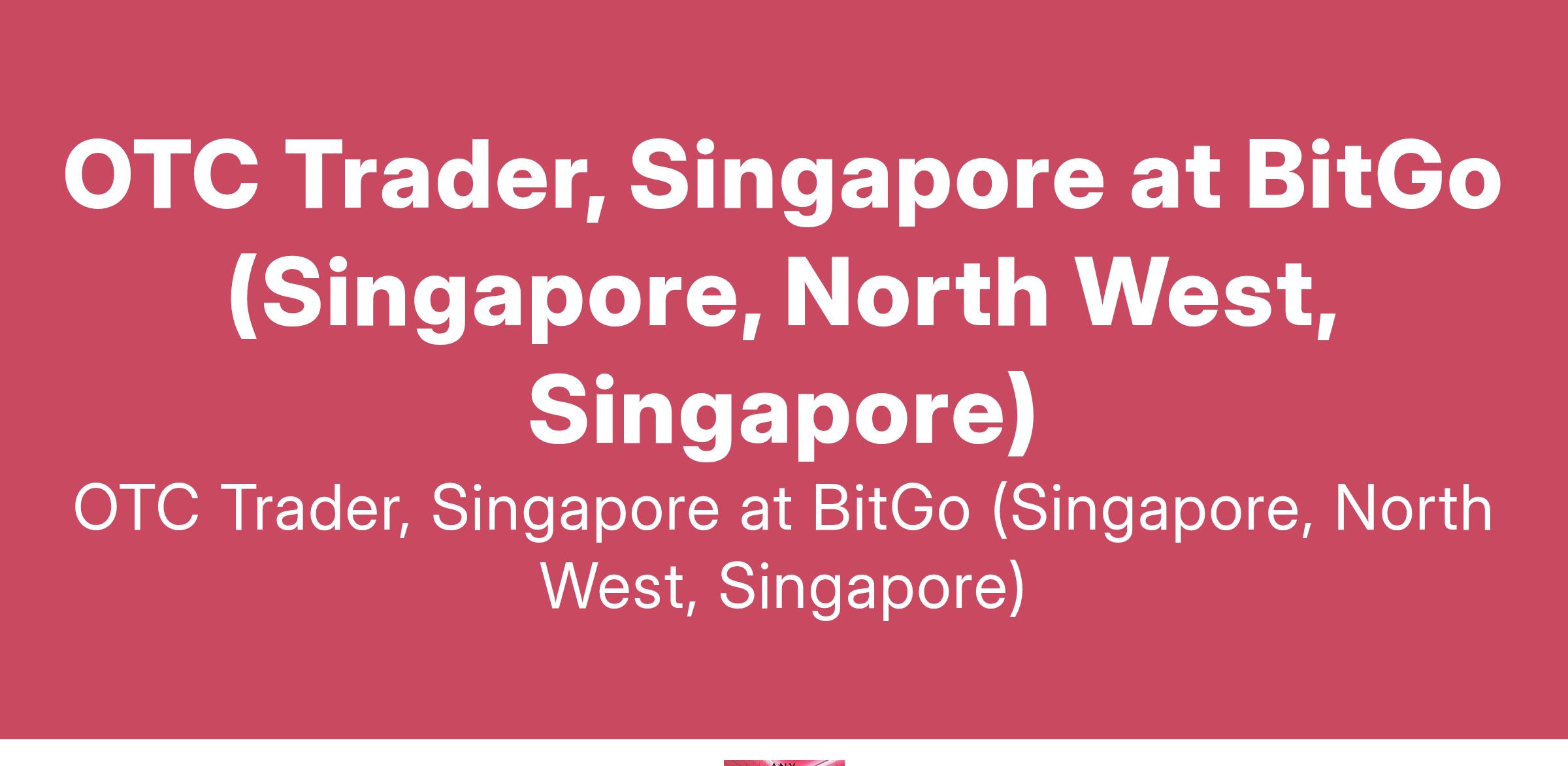 OTC Trader, Singapore at BitGo (Singapore, North West, Singapore)