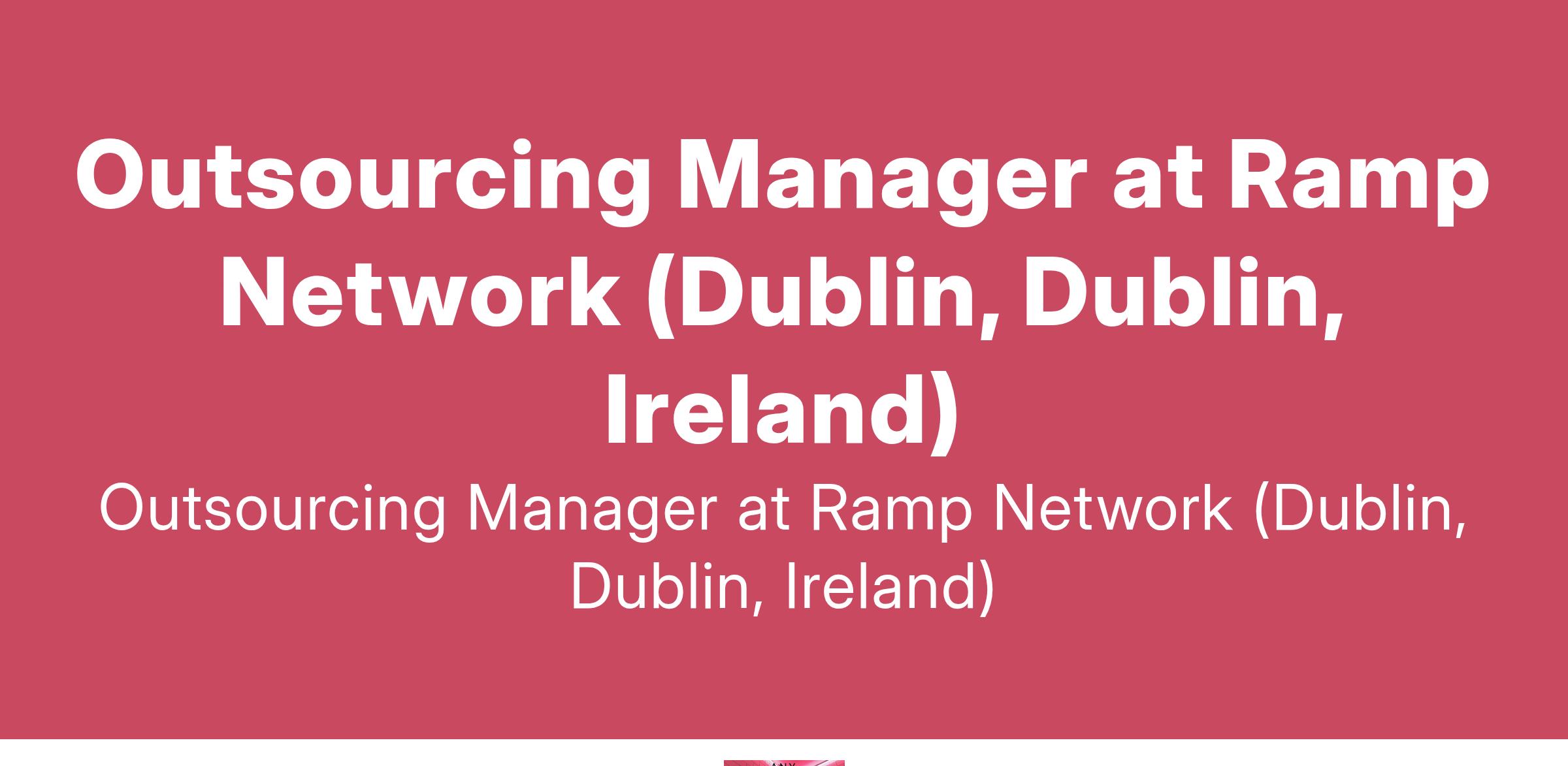 Outsourcing Manager at Ramp Network (Dublin, Dublin, Ireland)