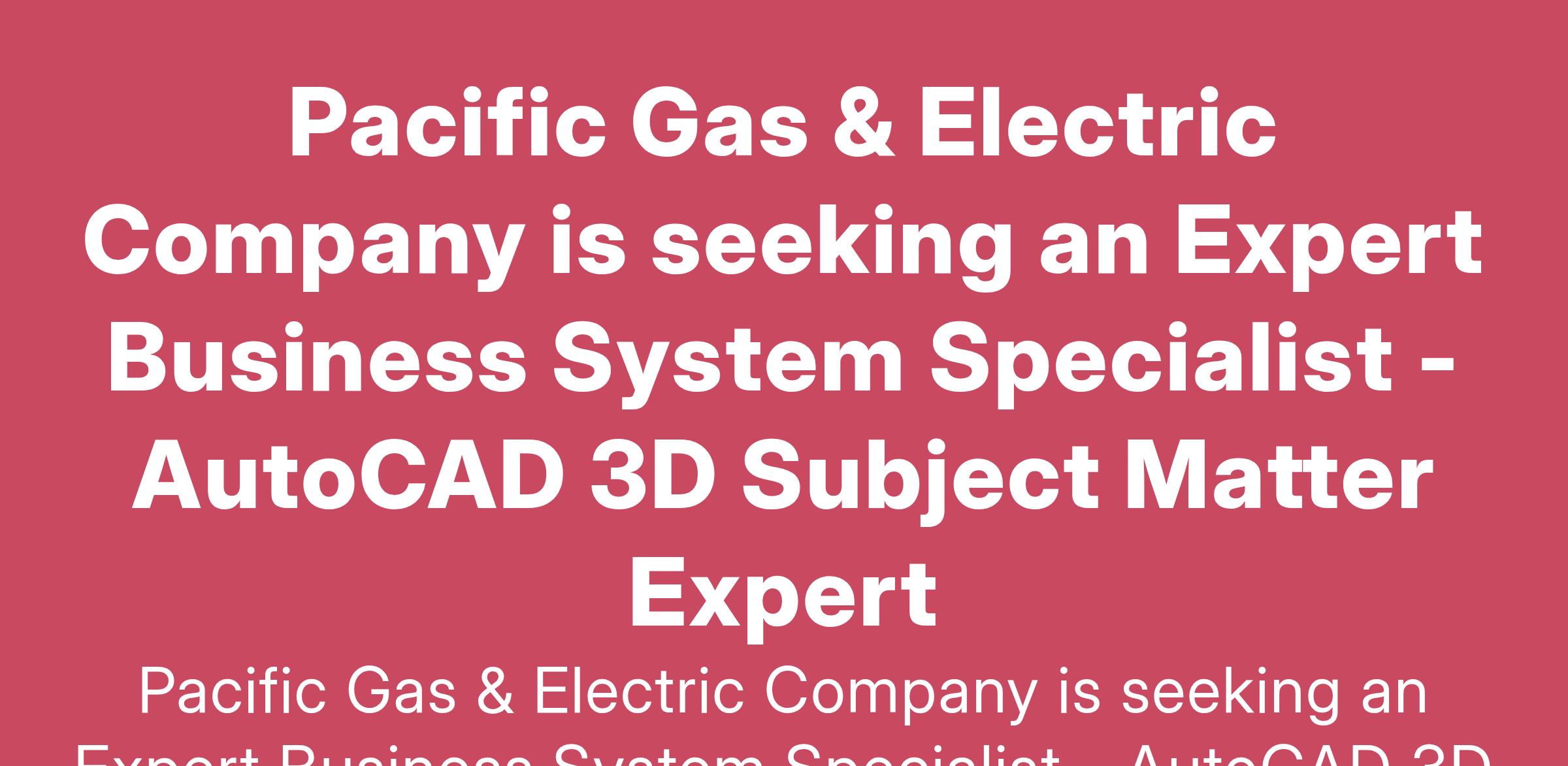 Pacific Gas & Electric Company is seeking an Expert Business System Specialist - AutoCAD 3D Subject Matter Expert