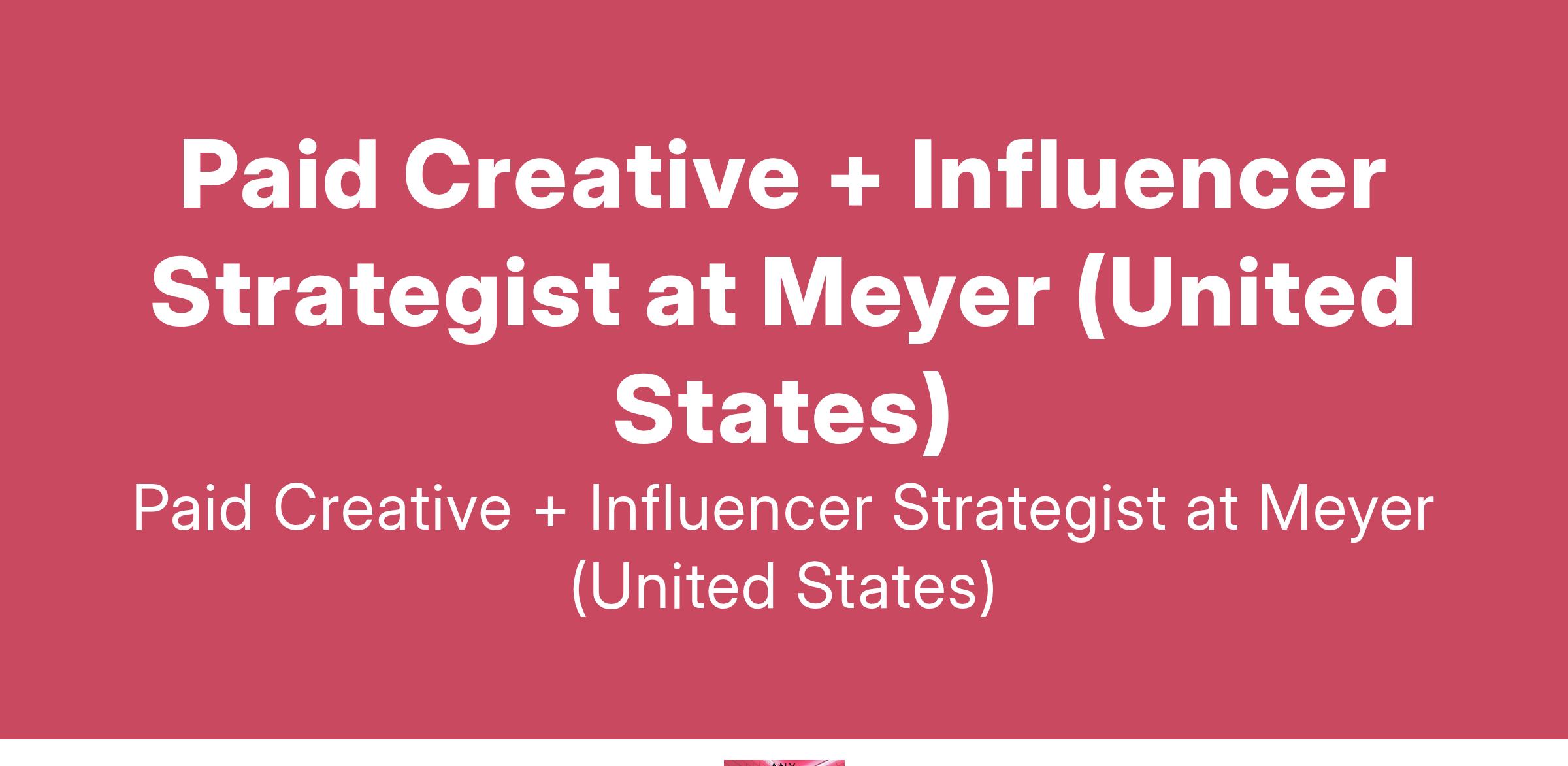 Paid Creative + Influencer Strategist at Meyer (United States)