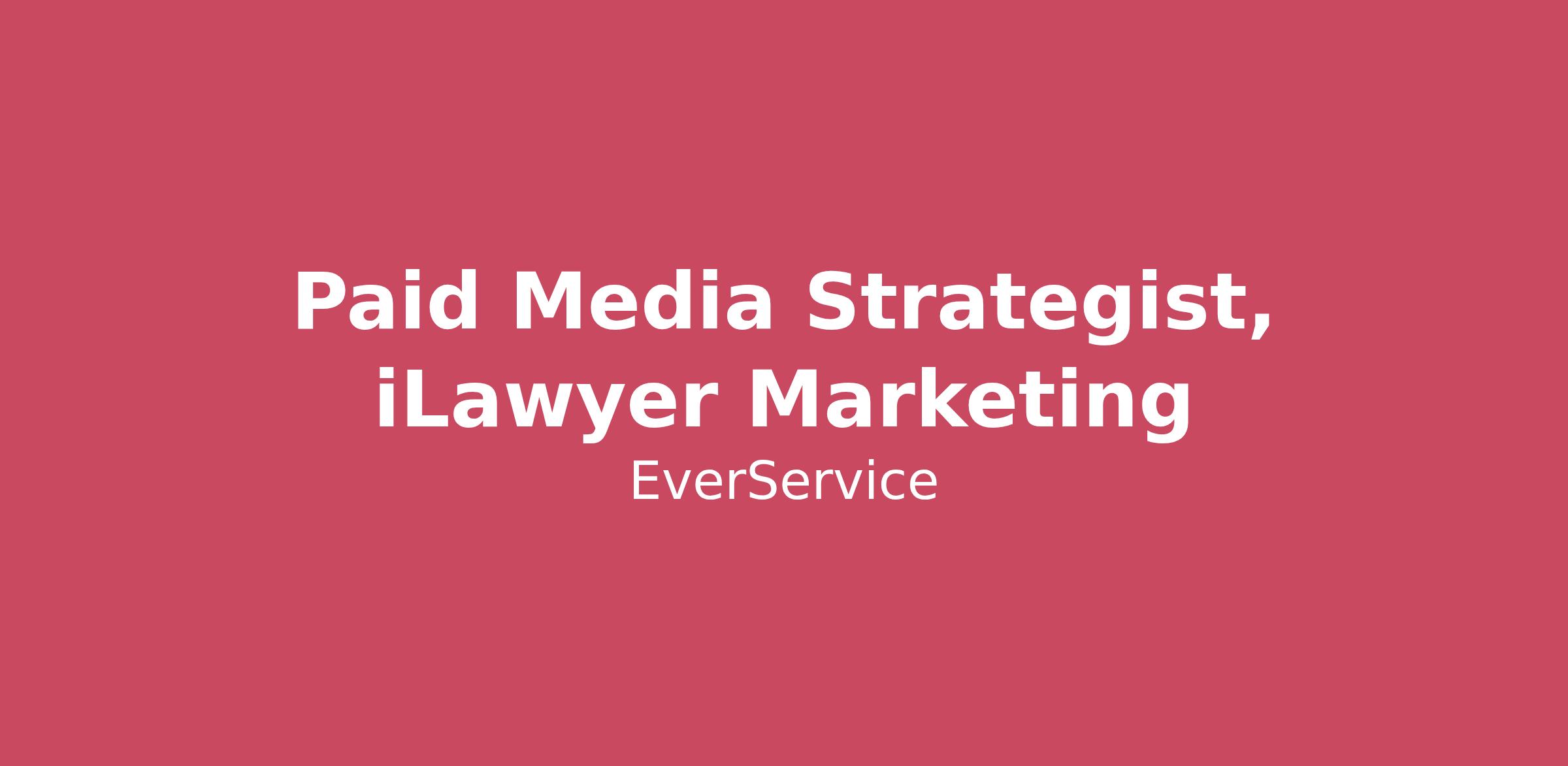 About iLawyer Marketing: iLawyer Marketing, an EverService company, is the premiere digital marketing agency for law firms in the U.S. We specialize in helping our clients generate more leads and signed cases through smarter SEO, better paid search campaigns, and by creating websites that focus on maximizing conversion rates.Summary of Position: We are seeking a talented and experienced Paid Media Strategist to join our digital marketing team. In this role, you will strategize, implement, optimize, and monitor effective paid media campaigns across various platforms, You will be responsible for driving traffic, leads, and conversions for our clients in the legal vertical. The ideal candidate will have a proven track record of success in Paid Media legal advertising, a strong data-driven and analytical skillset, and the ability to thrive in a fast-paced environment.Responsibilities:Create, manage, and optimize paid media campaigns for clients in the legal industry on Google, Bing, Meta, and other ad networksMonitor the pacing of paid media campaigns to ensure no under or over deliveryReport performance metrics to stakeholders, including strategy recommendations to improve performanceConduct competitive client research to position iLawyer Marketing clients ahead of their competitorsProvide support to internal stakeholders as it relates to relevant paid media requestsConduct keyword research and ad copy development to support campaign objectivesCollaborate with team members to brainstorm and implement innovative campaign strategiesStay up-to-date with industry trends and best practices in paid mediaSupport the Paid Media Director in day-to-day campaign management tasksAssist with ad hoc projects and additional job duties as assigned by management Bachelor's degree in Marketing, Advertising, Communications, or a related field preferred2+ years proven experience developing, executing, and optimizing multi-channel paid media campaigns (search, display, social, video, etc.) tailored to legal industryDeep understanding of lead generation funnels and conversion optimization within the legal digital marketing spaceExperience managing and scaling ad budgets efficiently, including forecasting, pacing, performance reportingProficiency with advanced tracking and attribution models (Google Tag Manager, Google Analytics 4, etc.)Familiarity with paid media platforms such as Google Ads, Bing Ads, and social media advertisingAbility to translate complex campaign metrics into clear, actionable recommendations for clients and internal teamsDemonstrated ability to stay current with paid media trends, platform updates, automation tools, and emerging ad formatsStrong analytical skills with the ability to interpret data and derive actionable insightsExcellent written and verbal communication skillsDetail-oriented with strong organizational abilitiesAbility to multitask and manage multiple projects simultaneouslyTeam player with a positive attitude and willingness to learn and growThe base salary range for this opportunity is $60,000 - $70,000 plus benefits. This target compensation range is subject to multiple factors including role level, experience and location. As you go through the interview process, your recruiter will work with you to identify a competitive base salary within the proposed target compensation range that will get you excited about your future at iLawyerMarketing. We’ve got you covered: EverService is proud to offer a variety of benefits to support employees and their families, including: Remote-First Environment Medical, Dental, & Vision Insurance Company 401(k) Matching Monthly Phone & Data Stipend Paid Vacation & Sick Time Off About EverService Holdings, LLC: EverService is a global provider of tech-enabled business solutions for companies of all sizes, helping them to grow and scale with digital marketing, website design & development, scheduling & booking services, 24/7 answering services, inbound & outbound sales, live virtual receptionists, client & patient intake, and IT services. The company focuses on end-to-end solutions specialized for the legal, medical, home services, retail and technology industries integrated with clients’ CRM, EHR and operational systems. EverService goes to market with vertically integrated, industry-leading brands including Alert Communications, Nexa Receptionists, RYNO Strategic Solutions, and iLawyerMarketing. For more information, visit EverService at https://everservice.com/ This job description is intended to describe the general nature and level of work being performed by people assigned to this position. It is not to be construed as an exhaustive list of all responsibilities, duties, and skills required of personnel. All personnel may be required to perform duties outside of their normal responsibilities from time to time, as needed. We are an equal employment opportunity employer. All qualified applicants will receive consideration for employment without regard to race, color, religion, gender, national origin, disability status, protected veteran status or any other characteristic protected by law.