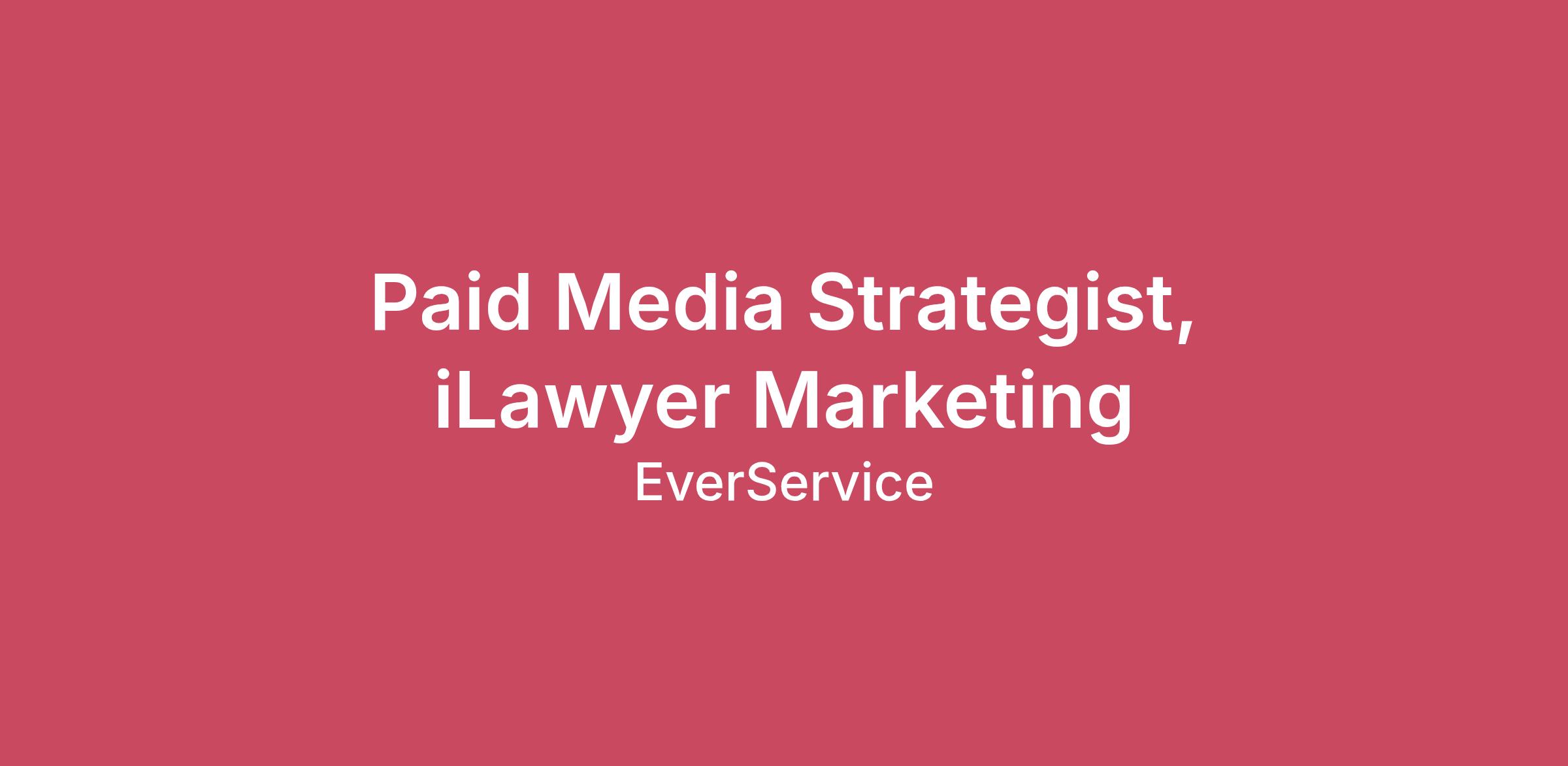 About iLawyer Marketing: iLawyer Marketing, an EverService company, is the premiere digital marketing agency for law firms in the U.S. We specialize in helping our clients generate more leads and signed cases through smarter SEO, better paid search campaigns, and by creating websites that focus on maximizing conversion rates.Summary of Position: We are seeking a talented and experienced Paid Media Strategist to join our digital marketing team. In this role, you will strategize, implement, optimize, and monitor effective paid media campaigns across various platforms, You will be responsible for driving traffic, leads, and conversions for our clients in the legal vertical. The ideal candidate will have a proven track record of success in Paid Media legal advertising, a strong data-driven and analytical skillset, and the ability to thrive in a fast-paced environment.Responsibilities:Create, manage, and optimize paid media campaigns for clients in the legal industry on Google, Bing, Meta, and other ad networksMonitor the pacing of paid media campaigns to ensure no under or over deliveryReport performance metrics to stakeholders, including strategy recommendations to improve performanceConduct competitive client research to position iLawyer Marketing clients ahead of their competitorsProvide support to internal stakeholders as it relates to relevant paid media requestsConduct keyword research and ad copy development to support campaign objectivesCollaborate with team members to brainstorm and implement innovative campaign strategiesStay up-to-date with industry trends and best practices in paid mediaSupport the Paid Media Director in day-to-day campaign management tasksAssist with ad hoc projects and additional job duties as assigned by management Bachelor's degree in Marketing, Advertising, Communications, or a related field preferred2+ years proven experience developing, executing, and optimizing multi-channel paid media campaigns (search, display, social, video, etc.) tailored to legal industryDeep understanding of lead generation funnels and conversion optimization within the legal digital marketing spaceExperience managing and scaling ad budgets efficiently, including forecasting, pacing, performance reportingProficiency with advanced tracking and attribution models (Google Tag Manager, Google Analytics 4, etc.)Familiarity with paid media platforms such as Google Ads, Bing Ads, and social media advertisingAbility to translate complex campaign metrics into clear, actionable recommendations for clients and internal teamsDemonstrated ability to stay current with paid media trends, platform updates, automation tools, and emerging ad formatsStrong analytical skills with the ability to interpret data and derive actionable insightsExcellent written and verbal communication skillsDetail-oriented with strong organizational abilitiesAbility to multitask and manage multiple projects simultaneouslyTeam player with a positive attitude and willingness to learn and growThe base salary range for this opportunity is $60,000 - $70,000 plus benefits. This target compensation range is subject to multiple factors including role level, experience and location. As you go through the interview process, your recruiter will work with you to identify a competitive base salary within the proposed target compensation range that will get you excited about your future at iLawyerMarketing. We’ve got you covered: EverService is proud to offer a variety of benefits to support employees and their families, including: Remote-First Environment Medical, Dental, & Vision Insurance Company 401(k) Matching Monthly Phone & Data Stipend Paid Vacation & Sick Time Off About EverService Holdings, LLC: EverService is a global provider of tech-enabled business solutions for companies of all sizes, helping them to grow and scale with digital marketing, website design & development, scheduling & booking services, 24/7 answering services, inbound & outbound sales, live virtual receptionists, client & patient intake, and IT services. The company focuses on end-to-end solutions specialized for the legal, medical, home services, retail and technology industries integrated with clients’ CRM, EHR and operational systems. EverService goes to market with vertically integrated, industry-leading brands including Alert Communications, Nexa Receptionists, RYNO Strategic Solutions, and iLawyerMarketing. For more information, visit EverService at https://everservice.com/ This job description is intended to describe the general nature and level of work being performed by people assigned to this position. It is not to be construed as an exhaustive list of all responsibilities, duties, and skills required of personnel. All personnel may be required to perform duties outside of their normal responsibilities from time to time, as needed. We are an equal employment opportunity employer. All qualified applicants will receive consideration for employment without regard to race, color, religion, gender, national origin, disability status, protected veteran status or any other characteristic protected by law.