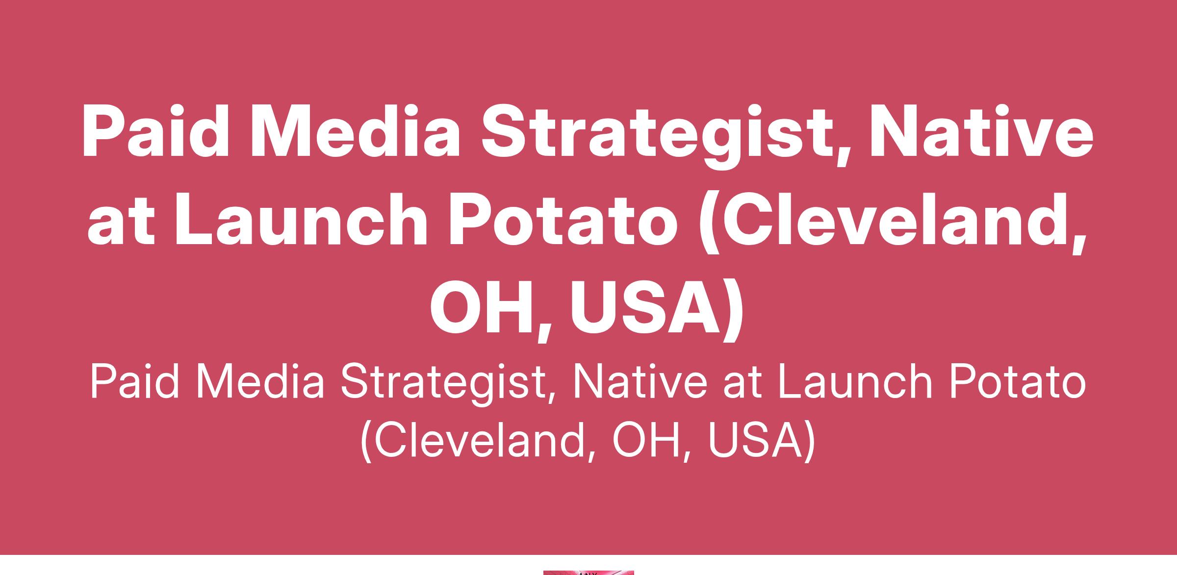 Paid Media Strategist, Native at Launch Potato (Cleveland, OH, USA)