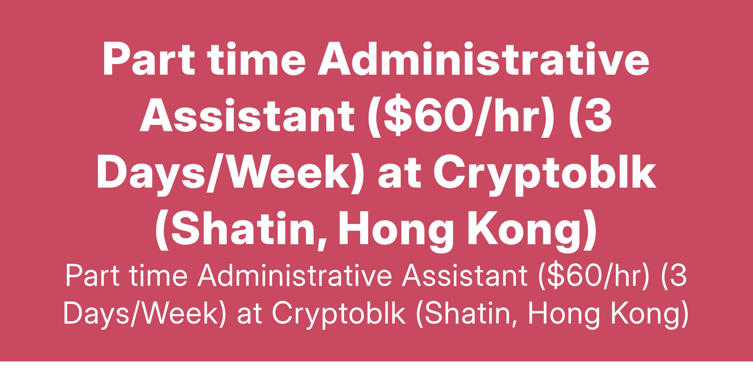 Part time Administrative Assistant ($60/hr) (3 Days/Week) at Cryptoblk (Shatin, Hong Kong)