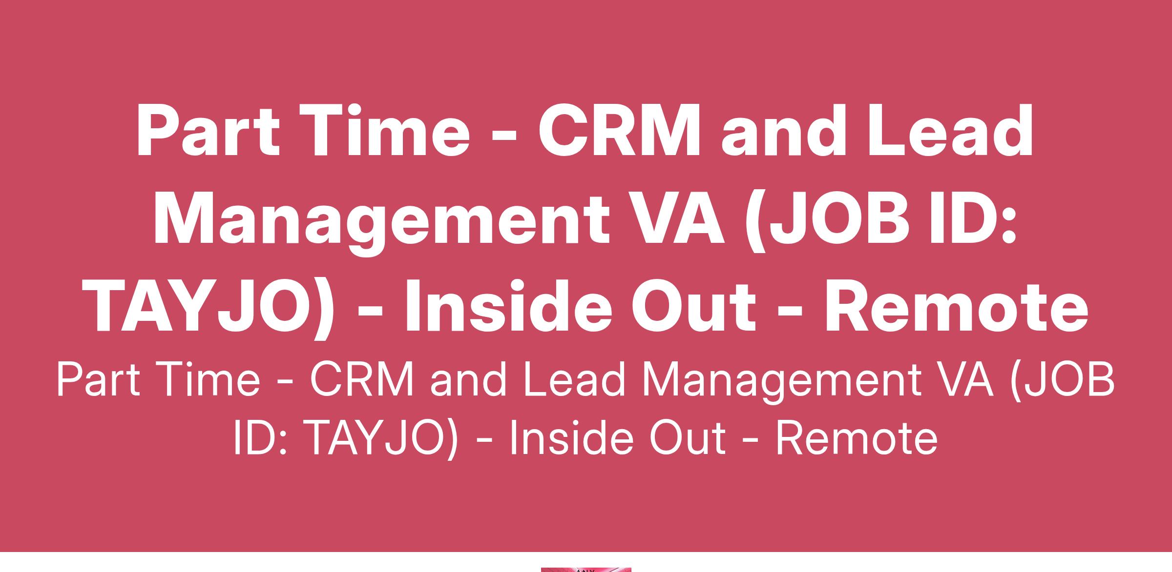 Job Title : Part Time - CRM and Lead Management VA