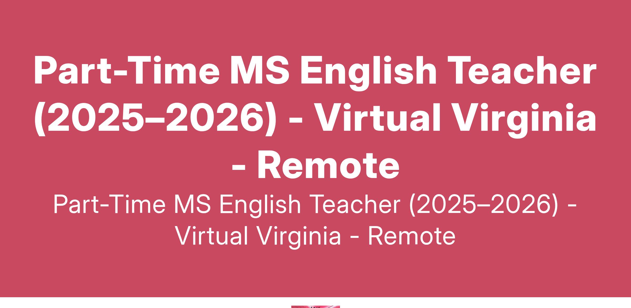 Bachelor’s degree (B.A.) from a four-year college or university. Certification from the Commonwealth of Virginia in the relevant subject area. Experience working in an online educational environment is preferred. Experience with the Canvas Learning Management system preferred, but not required. The applicant will have to complete a three-week teacher training course upon acceptance of the position if they have not already done so.