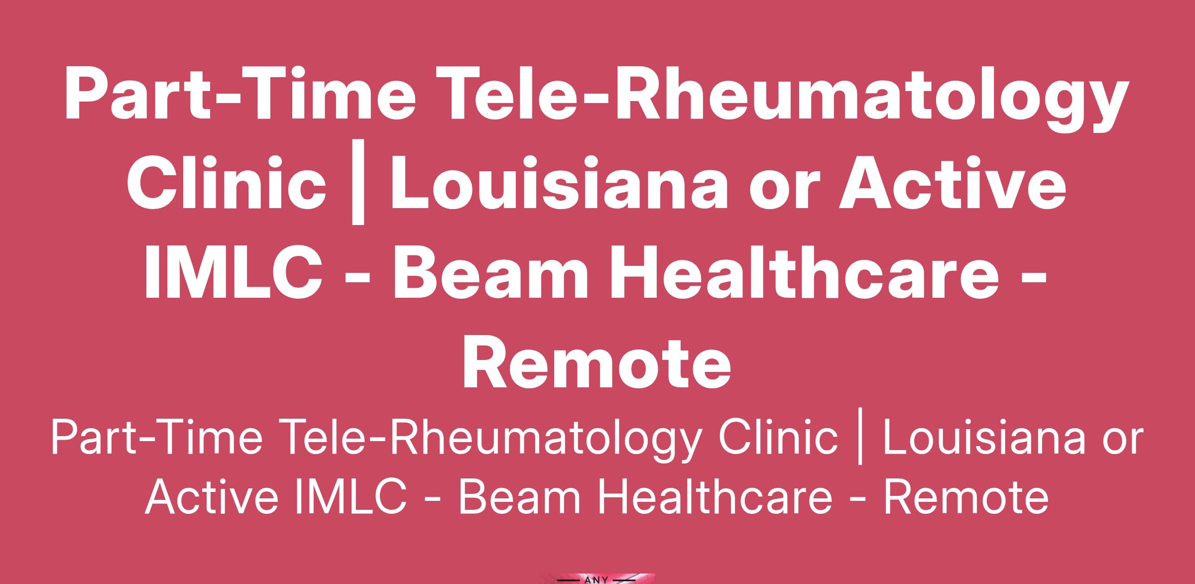 Are you a Board Certified Rheumatologist looking to get involved in an exciting new project? Do you desire flexibility in your work schedule, more autonomy in your professional life, and the rewards that come from helping the underserved? We are seeking a Rheumatologist to perform Outpatient Tele-Clinic. Our focus is to remove barriers to accessing specialty care.