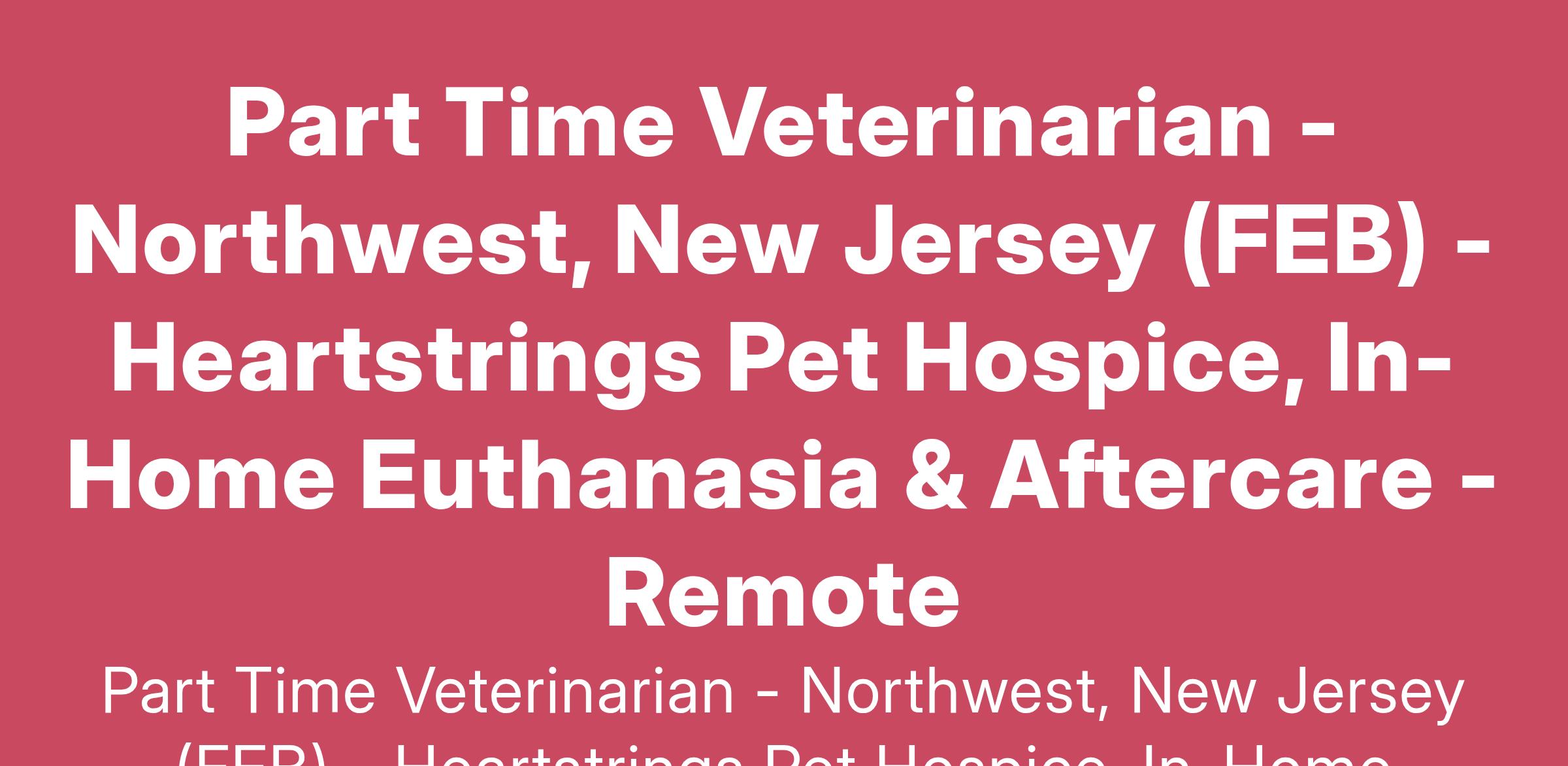 Experience Fulfillment at Heartstrings Pet Hospice! Join Our Team as an In-Home Veterinarian in Northwest New Jersey and Surrounding Area.