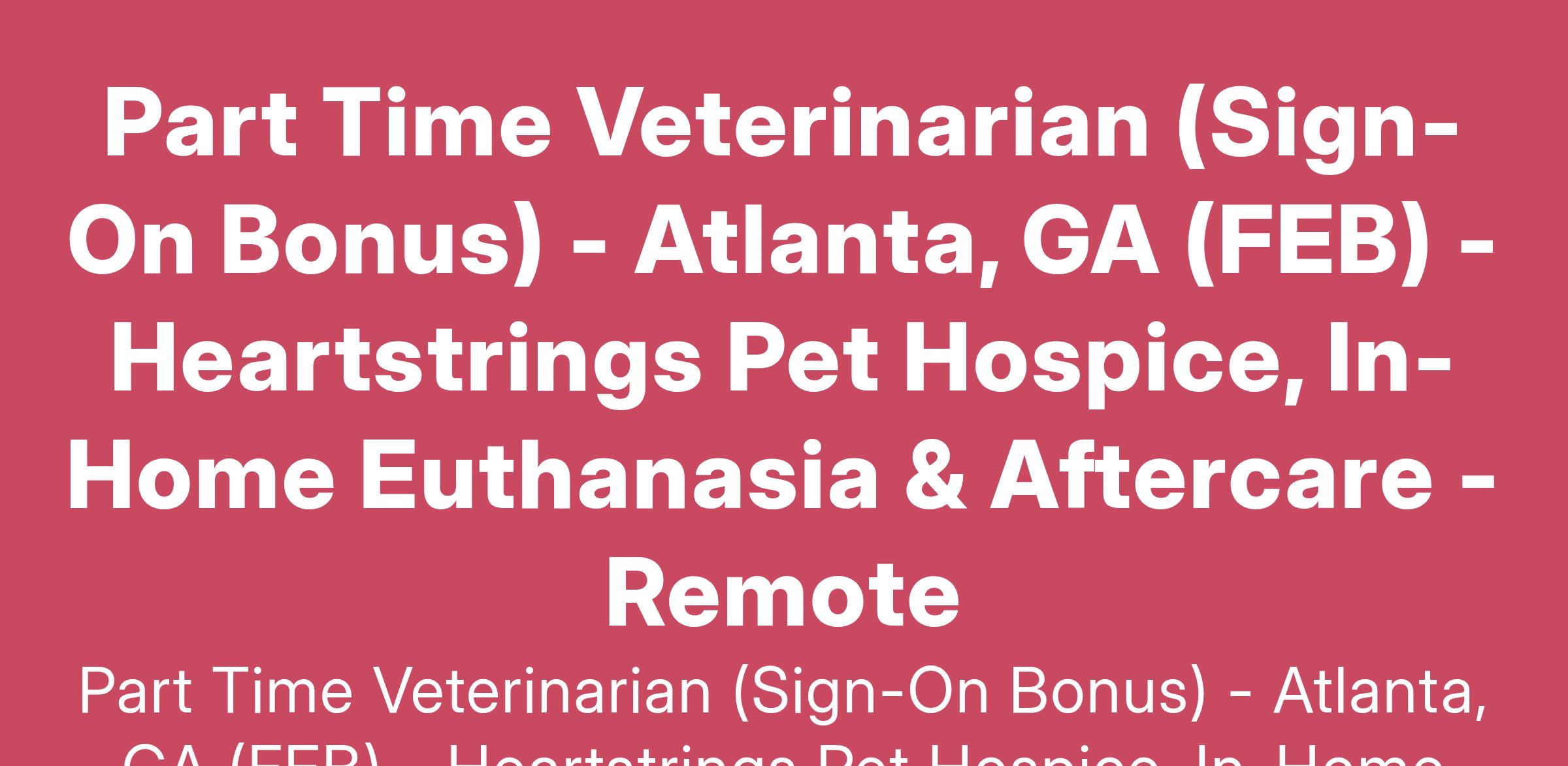 Experience Fulfillment at Heartstrings Pet Hospice! Join Our Team as an In-Home Veterinarian in Atlanta