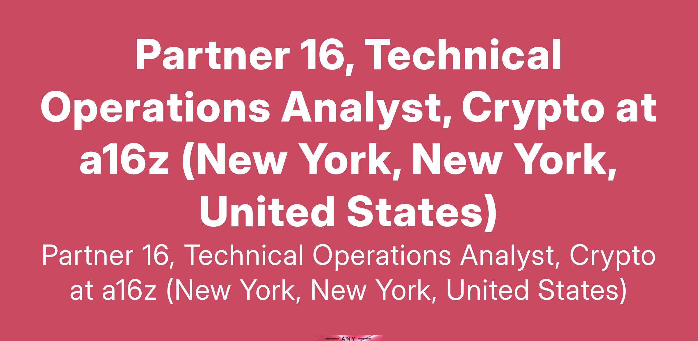 Partner 16, Technical Operations Analyst, Crypto at a16z (New York, New York, United States)