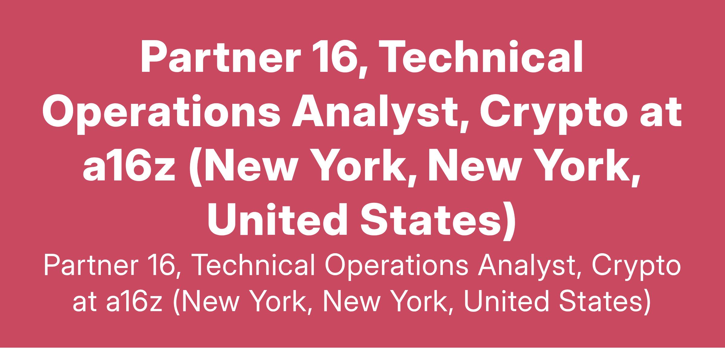 Partner 16, Technical Operations Analyst, Crypto at a16z (New York, New York, United States)