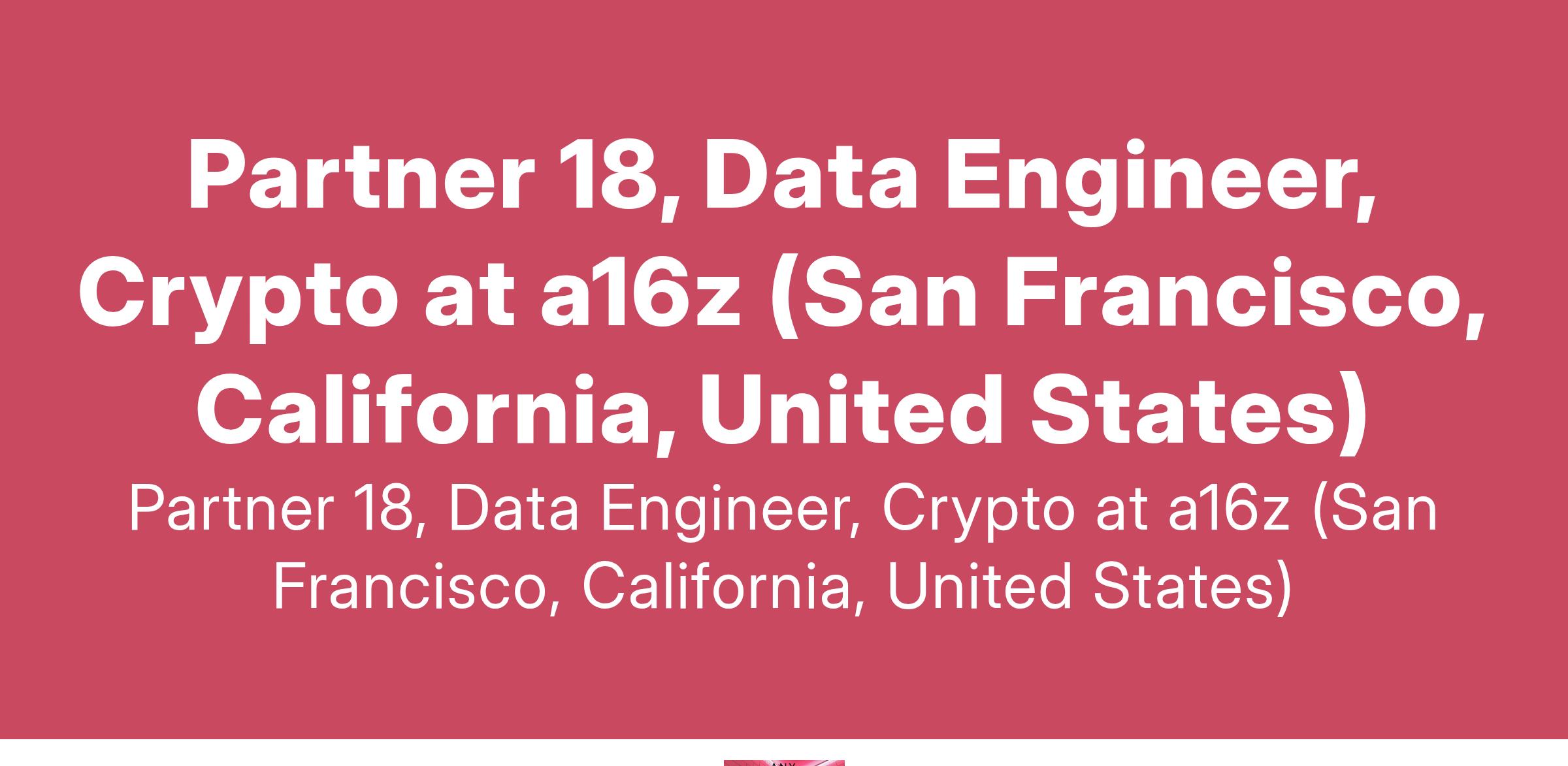 Partner 18, Data Engineer, Crypto at a16z (San Francisco, California, United States)