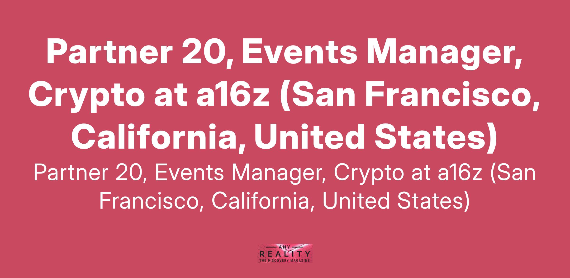 Partner 20, Events Manager, Crypto at a16z (San Francisco, California, United States)