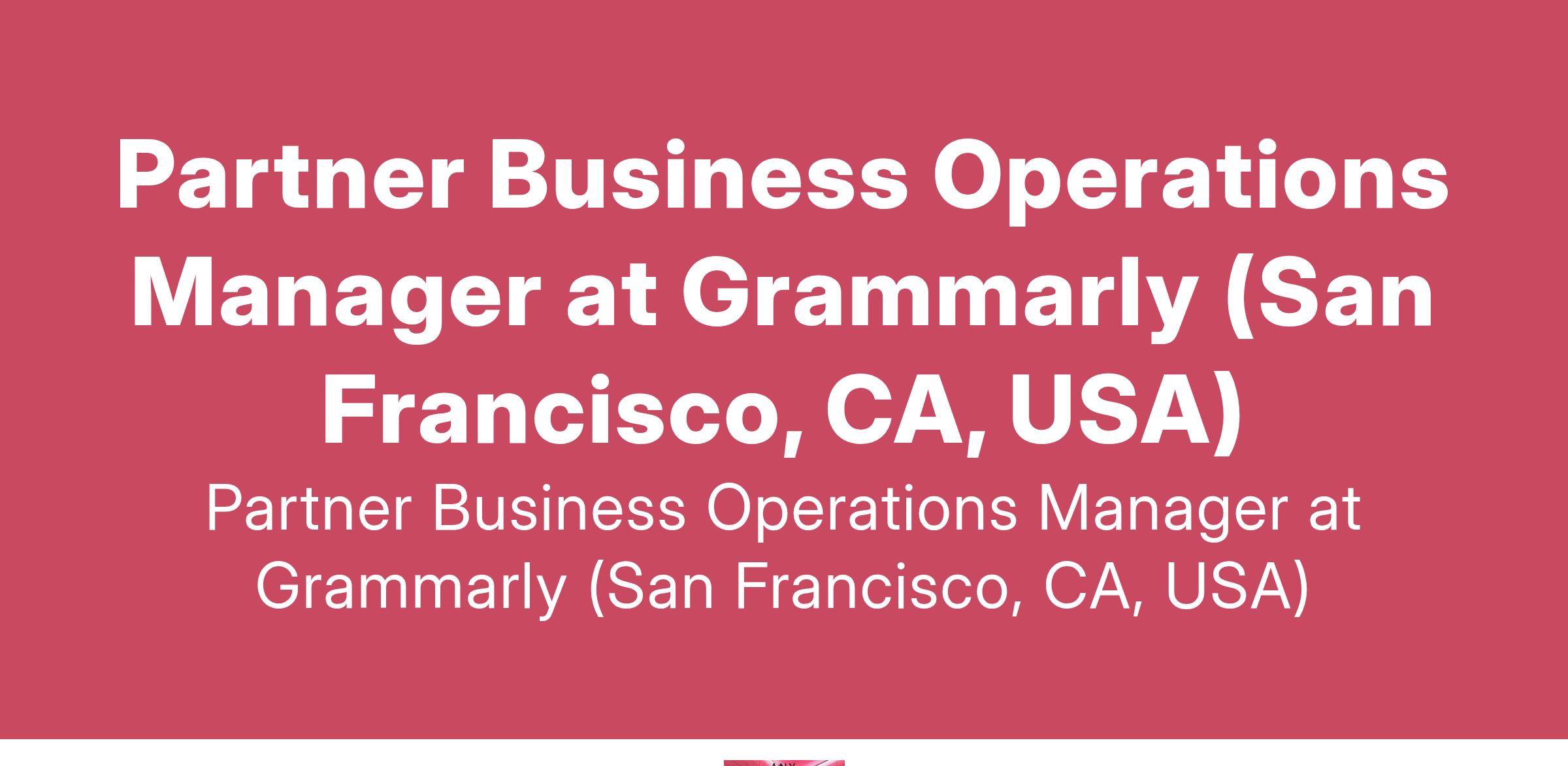 Partner Business Operations Manager at Grammarly (San Francisco, CA, USA)