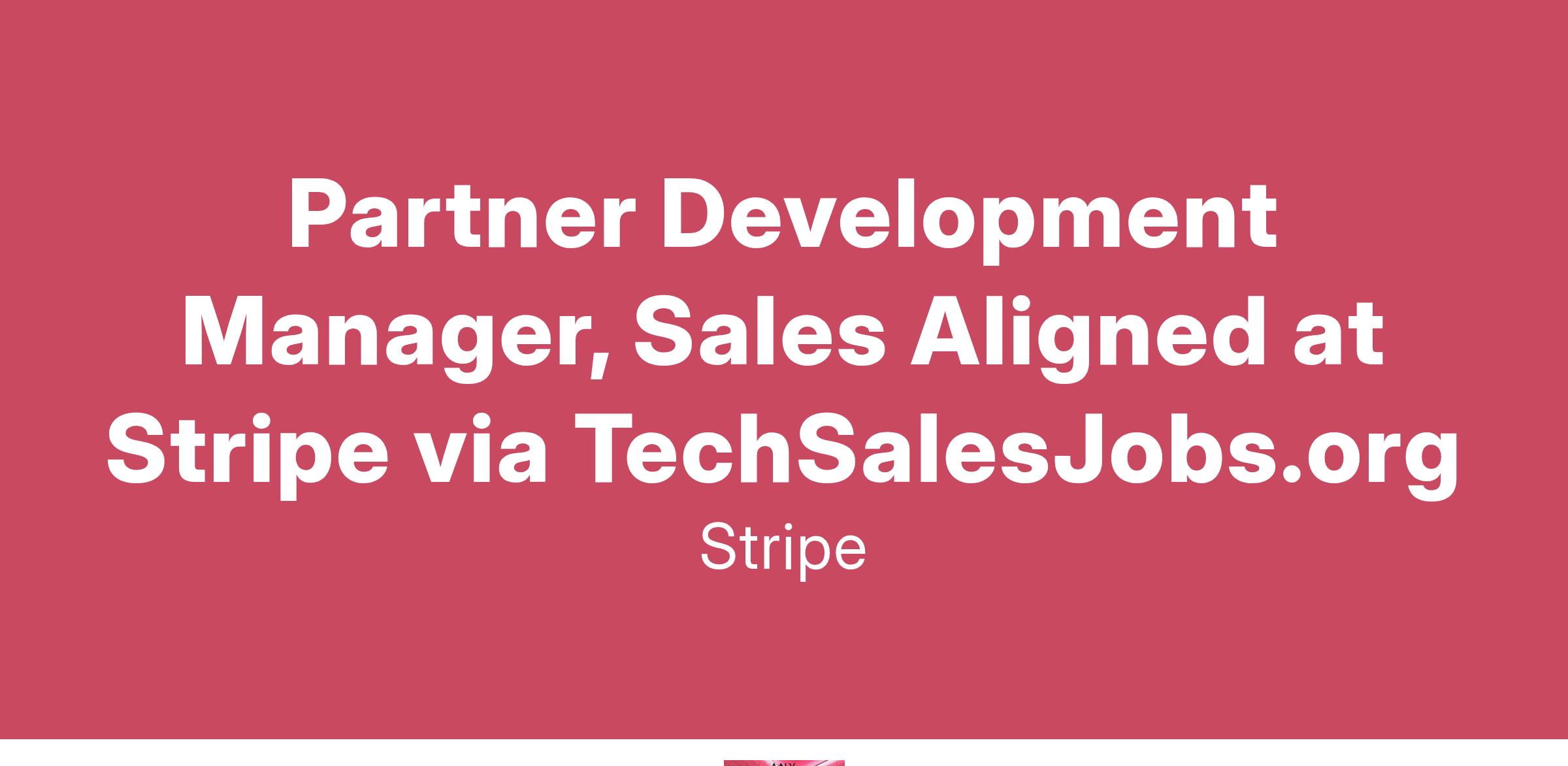 The Partner Development Manager, Sales Aligned role will support the overall success Stripe’s Alliances & Channels org, driving joint GTM (Go To Market) and co-sell success alongside Partner Development Managers and across opportunities at scale. This position is fast-paced, highly visible, and aligned to quarterly metrics. As a Partner Development Manager, Sales Aligned you will hold a holistic view of the business, generated by and engaged with Partners, and will work across the Stripe Sales segments to enhance and grow partner-related Stripe revenue.