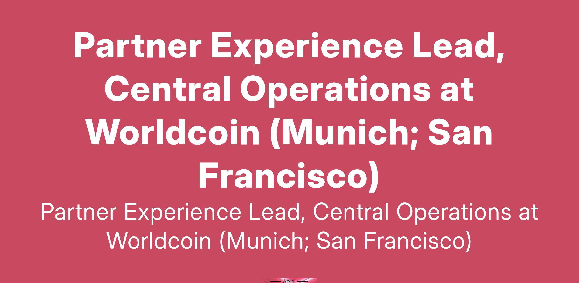 Partner Experience Lead, Central Operations at Worldcoin (Munich; San Francisco)