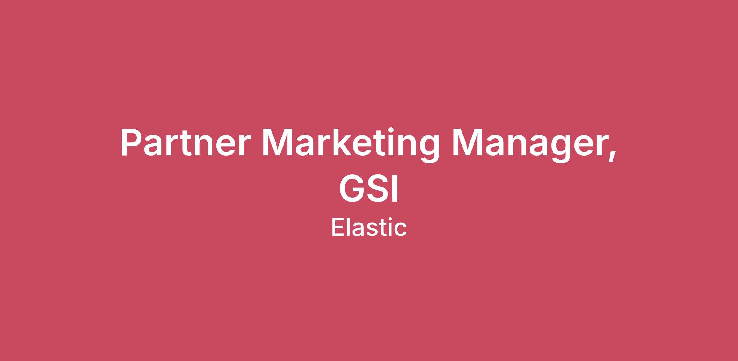 Elastic, the Search AI Company, enables everyone to find the answers they need in real time, using all their data, at scale — unleashing the potential of businesses and people. The Elastic Search AI Platform, used by more than 50% of the Fortune 500, brings together the precision of search and the intelligence of AI to enable everyone to accelerate the results that matter. By taking advantage of all structured and unstructured data — securing and protecting private information more effectively — Elastic’s complete, cloud-based solutions for search, security, and observability help organizations deliver on the promise of AI.What is the Role At Elastic, our ecosystem of partners is central to how we grow. Global Systems Integrators (GSIs) and services partners play a key role in bringing Elastic solutions to market, supporting customer adoption, and delivering services-led outcomes. We are seeking a Partner Marketing Manager to lead partner marketing efforts aligned to our GSI and services partners. This role is responsible for planning and delivering partner-specific marketing initiatives that reflect shared priorities, joint solutions, and agreed go-to-market motions. What You Will Be Doing Own Joint Marketing Plans Develop and manage joint marketing plans with assigned partners. Translate partner business objectives, solution priorities, and GTM motions into clear marketing initiatives. Ensure alignment between partner plans and Elastic’s broader ecosystem and field priorities. Implement Partner-Specific Initiatives Lead execution of partner-aligned campaigns, events, and activations defined in joint plans. Coordinate timelines, deliverables, and inputs across internal teams and partners. Adapt execution based on partner needs, regional priorities, and business context. Collaboration Serve as the primary marketing point of contact for assigned partners. Work closely with Alliances, Sales, Field Marketing, and Product Marketing to align plans and execution. Build strong working relationships with partner marketing counterparts. Support Partner-Led GTM Motions Collaborate with partners to position Elastic within joint solutions, services offerings, and customer engagements. Support partner-hosted or partner-led activities that take Elastic solutions to market. Ensure Elastic messaging is consistently represented in partner-facing activities. Measure & Refine Track performance against joint marketing plans, including engagement and pipeline contribution. Use insights from execution and partner feedback to refine future plans. Share results and recommendations with leadership. What You Bring 5+ years of proven experience in marketing programs, partner marketing, or campaign execution Experience coordinating multi-stakeholder marketing activities Strong organizational and communication skills Ability to manage multiple tasks and responsibilities. Experience working within defined processes Demonstrated attention to detail when supporting budgets, contracts, and purchase orders Availability for occasional travel as needed Compensation for this role is in the form of base salary. This role does not have a variable compensation component. The typical starting salary range for new hires in this role is listed below. In select locations (including Seattle WA, Los Angeles CA, the San Francisco Bay Area CA, and the New York City Metro Area), an alternate range may apply as specified below. These ranges represent the lowest to highest salary we reasonably and in good faith believe we would pay for this role at the time of this posting. We may ultimately pay more or less than the posted range, and the ranges may be modified in the future. An employee's position within the salary range will be based on several factors including, but not limited to, relevant education, qualifications, certifications, experience, skills, geographic location, performance, and business or organizational needs. Elastic believes that employees should have the opportunity to share in the value that we create together for our shareholders. Therefore, in addition to cash compensation, this role is currently eligible to participate in Elastic's stock program. Our total rewards package also includes a company-matched 401k with dollar-for-dollar matching up to 6% of eligible earnings, along with a range of other benefits offered with a holistic emphasis on employee well-being.The typical starting salary range for this role is:$106,900—$169,100 USDThe typical starting salary range for this role in the select locations listed above is:$128,200—$202,700 USDAdditional Information - We Take Care of Our People As a distributed company, diversity drives our identity. Whether you’re looking to launch a new career or grow an existing one, Elastic is the type of company where you can balance great work with great life. Your age is only a number. It doesn’t matter if you’re just out of college or your children are; we need you for what you can do. We strive to have parity of benefits across regions and while regulations differ from place to place, we believe taking care of our people is the right thing to do. Competitive pay based on the work you do here and not your previous salary Health coverage for you and your family in many locations Ability to craft your calendar with flexible locations and schedules for many roles Generous number of vacation days each year Increase your impact - We match up to $2000 (or local currency equivalent) for financial donations and service Up to 40 hours each year to use toward volunteer projects you love Embracing parenthood with minimum of 16 weeks of parental leave Different people approach problems differently. We need that. Elastic is an equal opportunity employer and is committed to creating an inclusive culture that celebrates different perspectives, experiences, and backgrounds. Qualified applicants will receive consideration for employment without regard to race, ethnicity, colo