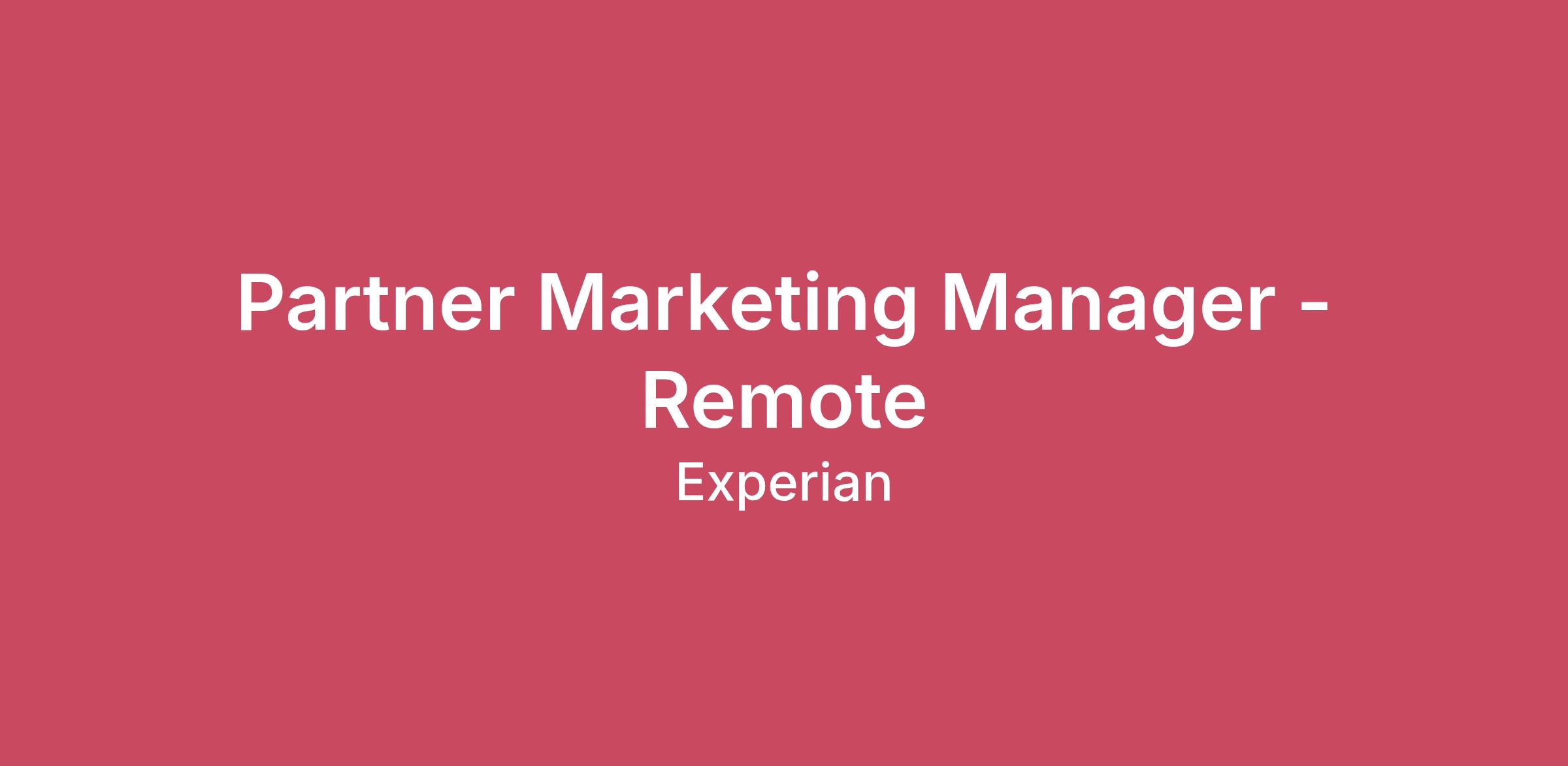Company DescriptionExperian is a global data and technology company, powering opportunities for people and businesses around the world. We help to redefine lending practices, uncover and prevent fraud, simplify healthcare, create marketing solutions, and gain deeper insights into the automotive market, all using our unique combination of data, analytics and software. We also assist millions of people to realise their financial goals and help them save time and money.We operate across a range of markets, from financial services to healthcare, automotive, agribusiness, insurance, and many more industry segments.We invest in people and new advanced technologies to unlock the power of data. As a FTSE 100 Index company listed on the London Stock Exchange (EXPN), we have a team of 22,500 people across 32 countries. Our corporate headquarters are in Dublin, Ireland. Learn more at experianplc.comJob DescriptionWe are looking for a strategic marketing professional to lead partner marketing programs that support revenue growth, retention and partner engagement. You bring marketing strategy, project management, and content expertise. You will manage multiple marketing programs, lead team collaboration, and present to both company partners and external partners. You will work remotely and report to the Senior Director, Marketing. Responsibilities include: Oversee end‑to‑end program management, including scope, timelines, workflows, intake, prioritization, and risk/issue mitigation across partner marketing initiatives.Manage budgets, SOWs, vendor hours, pricing, and financial reporting in partnership with Finance, Contracts, and Sales.Lead partner-facing meetings (planning sessions, QBRs, initiative reviews) and collaborate with Sales and Account teams to support retention and growth goals.Manage end‑to‑end campaign execution—including strategy, creative, compliance review, deployment, and data‑secure intake/ticketing processes.Lead Partner Marketing Services offerings, identifying opportunities to scale solutions, improve efficiencies, and increase revenue contribution.Develop partner‑specific marketing strategies, messaging frameworks, content calendars, and strategic/seasonal content for partner use.Analyze campaign and partner performance, producing quarterly reports, recaps, ROI analyses, and insights that inform strategy and optimization.Maintain partner marketing processes and documentation, ensuring adherence to legal, regulatory, and compliance standards in partnership with internal teams.Support onboarding of new partners and development of strategic marketing roadmaps.Oversee updates and enhancements to the Partner Marketing Portal, ensuring accuracy, relevance, and adoption.Use analytics tools and market research to inform strategy and partner-ready messaging.Support broader Integrated Marketing programs and ad hoc projects as our needs evolve. QualificationsBachelor's degree required; preferably in Marketing, Communications, Journalism, or Public Relations.6+ years of experience in partner, account, or marketing communications roles.Experience leading integrated B2B and B2C marketing campaigns.Project management and client management skills.Experience presenting to and working directly with external clients.Translate complex concepts into clear, applicable marketing strategies.Experience in financial services or regulated industries.Proficiency with tools such as Asana, Wrike, Jira, Salesforce Marketing Cloud, Adobe CMS, WordPress, and analytics platforms.Additional InformationPerks:Lucrative overachievement planExperian Elite – Annual trip for Top Performers15 days of vacation accrual annually, five sick days, two volunteer daysWellness plans, online discounts, employee discounts, pet insurance and moreEmployee stock purchase program and 401K matching and immediate vestingExperian is proud to be an Equal Opportunity and Affirmative Action employer. Innovation is a critical part of Experian's DNA and practices, and our diverse workforce drives our success. Everyone can succeed at Experian and bring their whole self to work, irrespective of their gender, ethnicity, religion, colour, sexuality, physical ability or age. If you have a disability or special need that requires accommodation, please let us know at the earliest opportunity.#LI-RemoteEmployee Status: RegularRole Type: HomeJob Posting - Salary Range: $100,649 - $174,459Department: Marketing and CommunicationsFlexible Time Off: 20 DaysSchedule: Full TimeShift: Day Shift