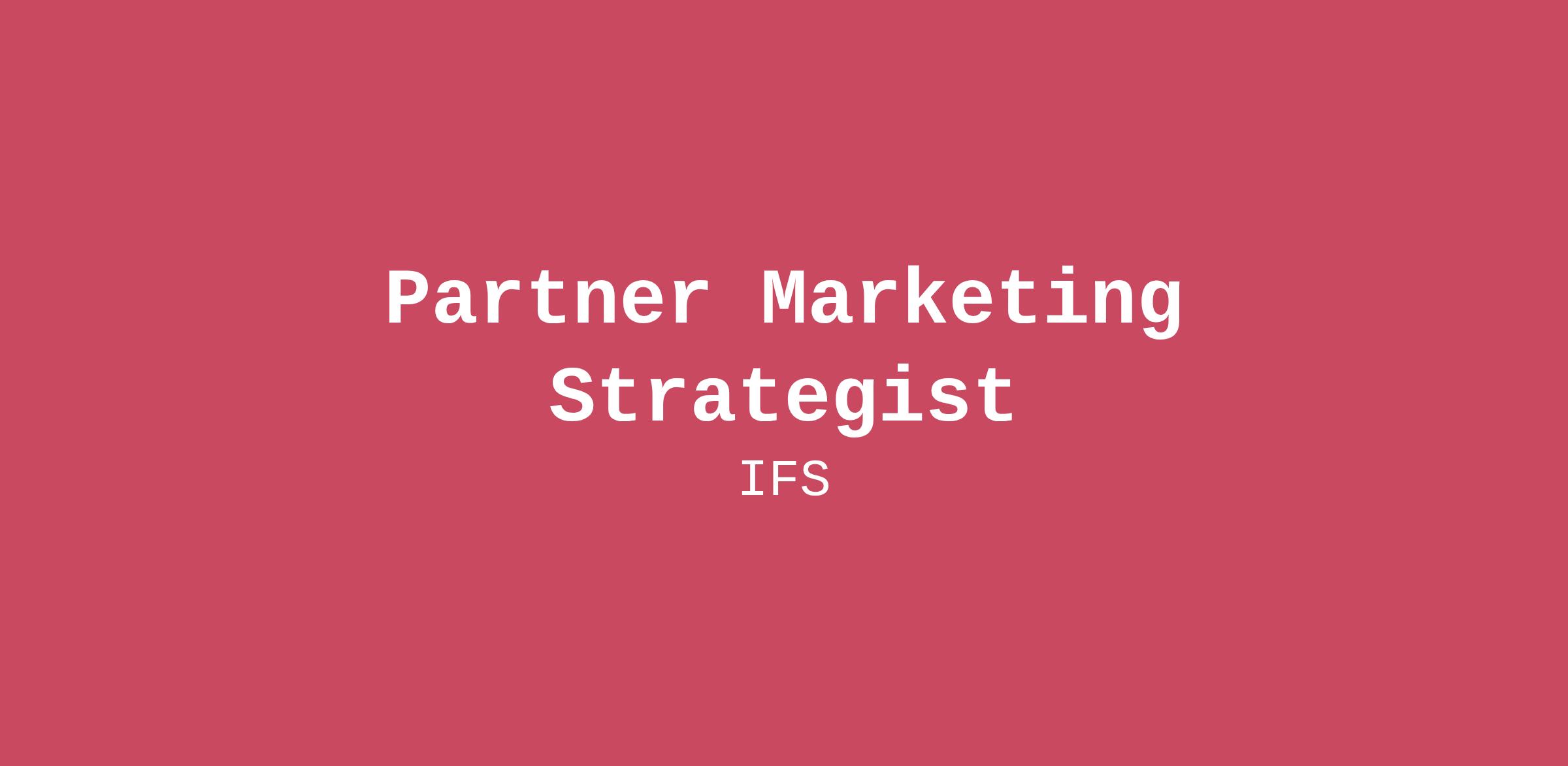 Company DescriptionIFS is a billion-dollar revenue company with 6000+ employees on all continents. Our leading AI technology is the backbone of our award-winning enterprise software solutions, enabling our customers to be their best when it really matters–at the Moment of Service™. Our commitment to internal AI adoption has allowed us to stay at the forefront of technological advancements, ensuring our colleagues can unlock their creativity and productivity, and our solutions are always cutting-edge.At IFS, we’re flexible, we’re innovative, and we’re focused not only on how we can engage with our customers but also on how we can make a real change and have a worldwide impact. We help solve some of society’s greatest challenges, fostering a better future through our agility, collaboration, and trust.We celebrate diversity and understand our responsibility to reflect the diverse world we work in. We are committed to promoting an inclusive workforce that fully represents the many different cultures, backgrounds, and viewpoints of our customers, our partners, and our communities. As a truly international company serving people from around the globe, we realize that our success is tantamount to the respect we have for those different points of view.By joining our team, you will have the opportunity to be part of a global, diverse environment; you will be joining a winning team with a commitment to sustainability; and a company where we get things done so that you can make a positive impact on the world.We’re looking for innovative and original thinkers to work in an environment where you can #MakeYourMoment so that we can help others make theirs. With the power of our AI-driven solutions, we empower our team to change the status quo and make a real difference.If you want to change the status quo, we’ll help you make your moment. Join Team Purple. Join IFS.Job DescriptionIFS is seeking a highly capable, self-directed Partner Marketing Strategist. In this role, you will develop a deep comprehension of the IFS and IFS partner GTM strategy and work directly with partners and SI’s (regional and global) to develop and deliver marketing programs that acquire new customers, as well as retain and grow existing customers. You will be responsible for working with our global marketing team to design messaging and enable campaign strategies to help grow the IFS partner network, along with helping the partner network generate pipeline. You will act as the primary partner marketing contact for the North America team participating in regular team calls, in-person meetings and planning sessions. You will also act as the primary marketing contact and consultant the strategic partnership, defining the regional strategy as well as building and executing annual joint marketing plans and programs. You will constantly monitor administer IFS utilization of Partner Market Development Funds (MDF), including being an expert resource on process, guidelines and compliance for internal marketing teams and partners. The ideal candidate has experience in B2B enterprise technology marketing, an entrepreneurial spirit, and a successful track record in managing to partner marketing and building top of funnel pipeline. Key Tasks:Develop and execute best-in-class marketing plans with key partners that effectively drive awareness and adoption of IFS partner solutionsWork closely with partner directors to identify priorities and partner marketing initiativesDefine regional joint marketing plans with strategic partnersDevelop detailed campaign project plans, including campaign goals, messaging, call to action, marketing distribution channels, follow-up activities, and success metricsWork closely with top IFS partners to build joint value proposition messaging and contentCreate innovative programs to scale effortsProven success in managing complex and multi-faceted, measured marketing programs with the ability to drive projects through completion and metrics.Develop marketing roadmaps that link the dots across channels and deliver a unified and coherent message to target audiencesResearch and pilot new programs and ideas that will drive future successBuild effective relationships with key stakeholdersQualificationsPossess an expert comprehension of how to drive business and marketing with and through the partner ecosystemKnowledgeable in B-to-B marketing management most specifically in the area of business software applicationsBackground in leveraging various marketing tactics such as digital, tradeshows, business development teams, email marketing, third-party programs, etc.Accomplished a range of skills from high-level strategic thinking to creative and executionProven experience in any of the following industries would be a plus (not required): Manufacturing, Construction, Energy, Aerospace & Defense, or Field Service ManagementDemonstrate ability to tie marketing programs to ROI metricsStrong team player, motivated to work collaboratively across a variety of stakeholdersKnowledge of industry tools including Marketo, Outreach, CRM, LinkedIn, PowerBI, etc.Professional-level presentation and written communication skillsRecommended 7+ years of experience in directing marketing and communicationsDemonstrates strong project management skills and is a proactive self-starterStrong organizational and time management skills and ability to handle multiple projects and meet deadlinesAble to simplify/synthesize complex data from a variety of sources and then communicate solutions in a simple, fresh perspective that clearly outlines the roles and deliverables of marketing channelsPossesses analytical mindset and innate curiosity, valuing research, insight, metrics, and data-driven decision-makingDevelops positive relationships across all levels of seniority cross-functionally, leveraging communications and project management skills to ensure consistency and alignment between all stakeholders internally and externallyMaturity