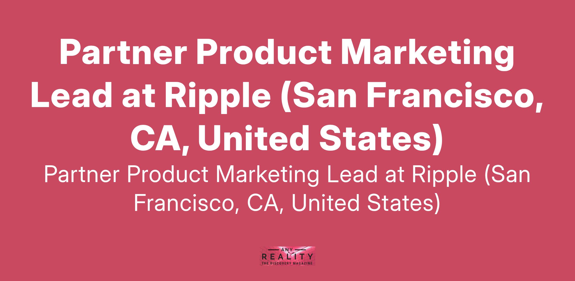 Partner Product Marketing Lead at Ripple (San Francisco, CA, United States)