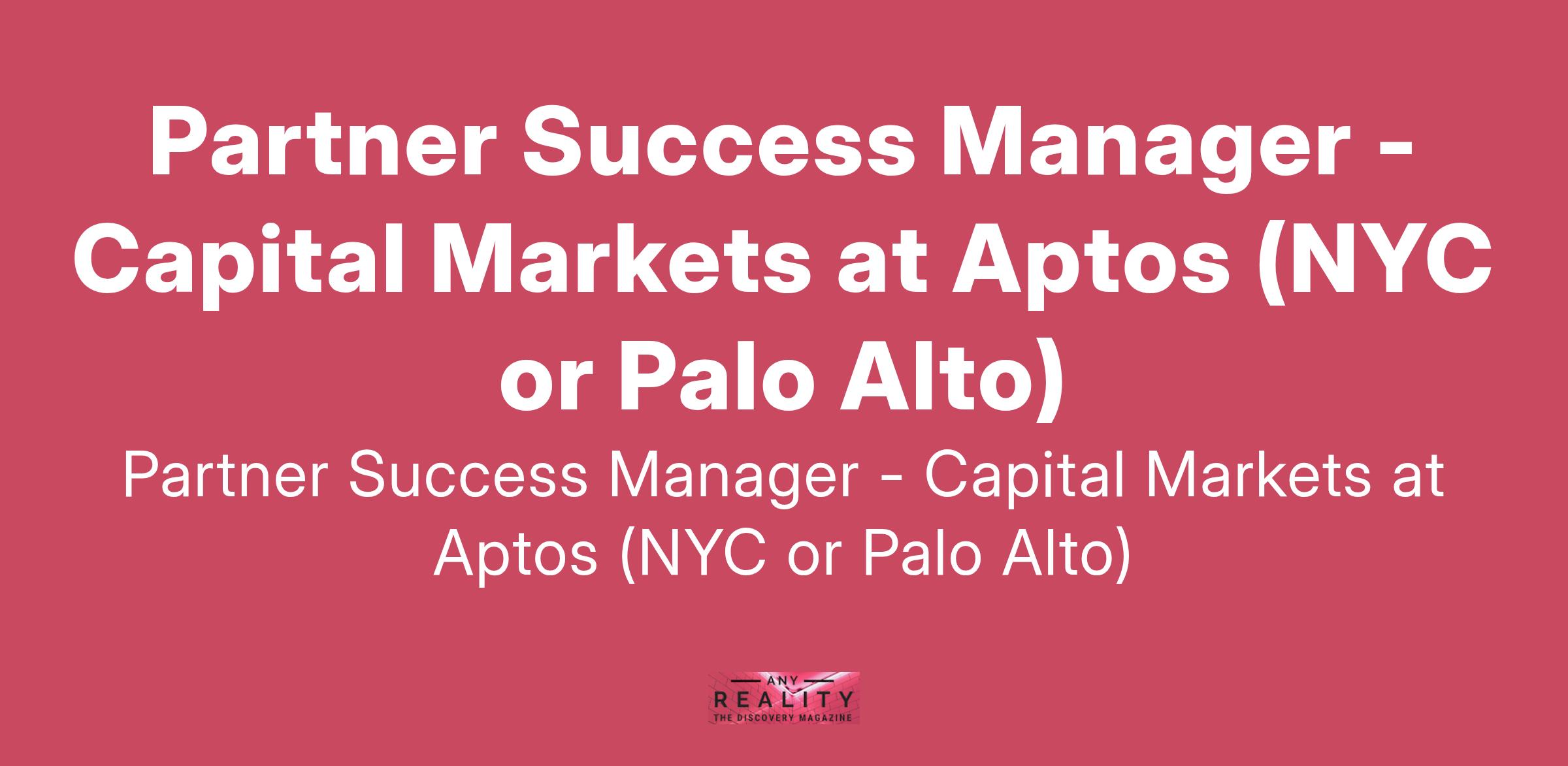 Partner Success Manager - Capital Markets at Aptos (NYC or Palo Alto)